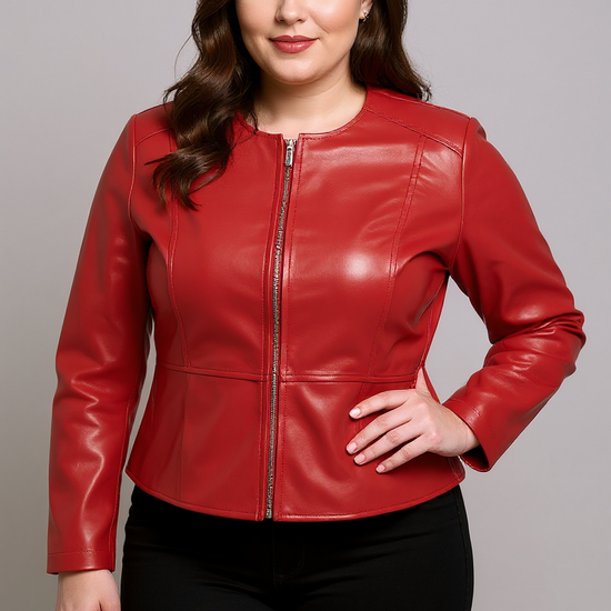 Den iøynefallende High Risk Red-fargen gjør denne jakken til et statement piece som skiller seg ut i enhver garderobe. Med rund hals og lange ermer er den både komfortabel og klassisk. De asymmetriske glidelåslukningene gir et moderne preg, mens de glidelåslukkede mansjettene sikrer en perfekt passform. Jakken er kort i lengden, noe som gjør den ideell for lag-på-lag-styling eller som et stilig overtrekk til antrekket ditt. Utforsk vårt utvalg av plus size jakker for flere alternativer.