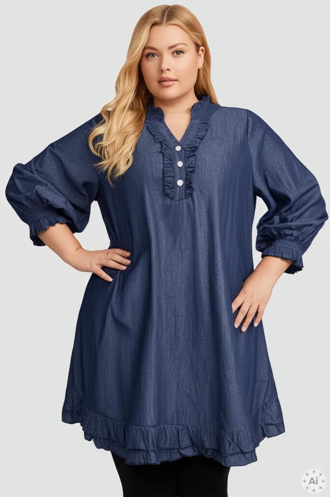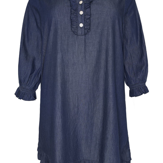Opplev den perfekte kombinasjonen av stil og komfort med denne vakre tunikaen fra Cassiopeia. Denne tunikaen er designet i en flott blue wash, som gir et klassisk denim-utseende som aldri går av moten. Med sitt avslappede snitt er den ideell for både hverdagsbruk og mer uformelle anledninger.