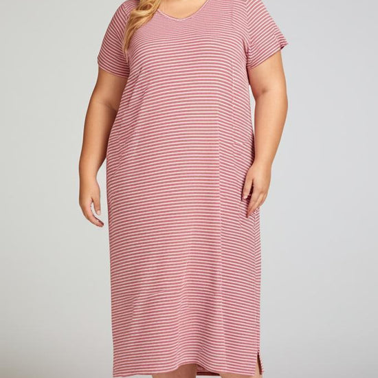 Opplev komfort og stil med EVILYNNA DRESS fra CASSIOPEIA. Denne kjolen er perfekt for både avslappede og festlige anledninger, takket være sitt allsidige design og behagelige passform. Med en rund halsutskjæring og korte ermer, får du en kjole som er ideell for varmere dager eller som en del av et lag-på-lag antrekk.