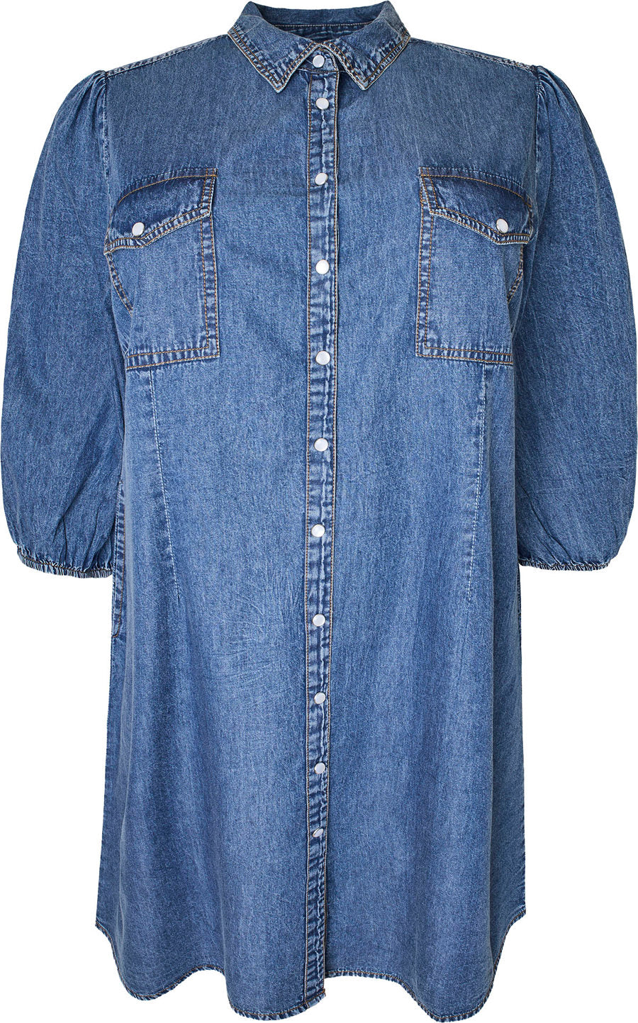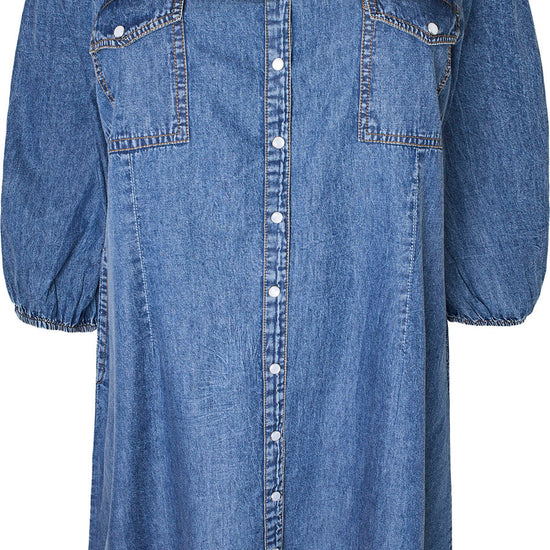 Den tidløse blå fargen og denimstoffet gjør denne kjolen til et allsidig valg, som kan styles med forskjellige overdeler og tilbehør for å skape et unikt uttrykk til enhver anledning.