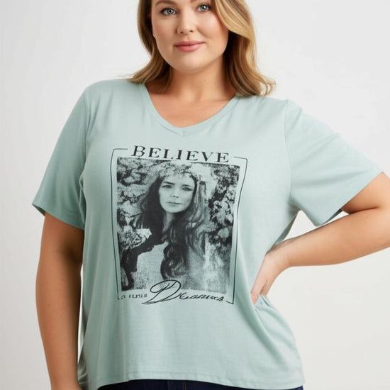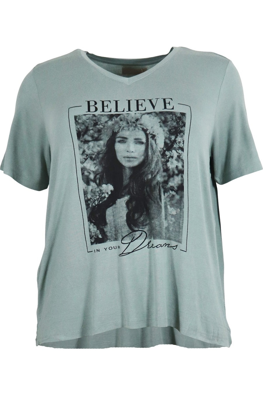 - Bohemsk print med en inspirerende beskjed som gjør T-skjorten unik og personlig.