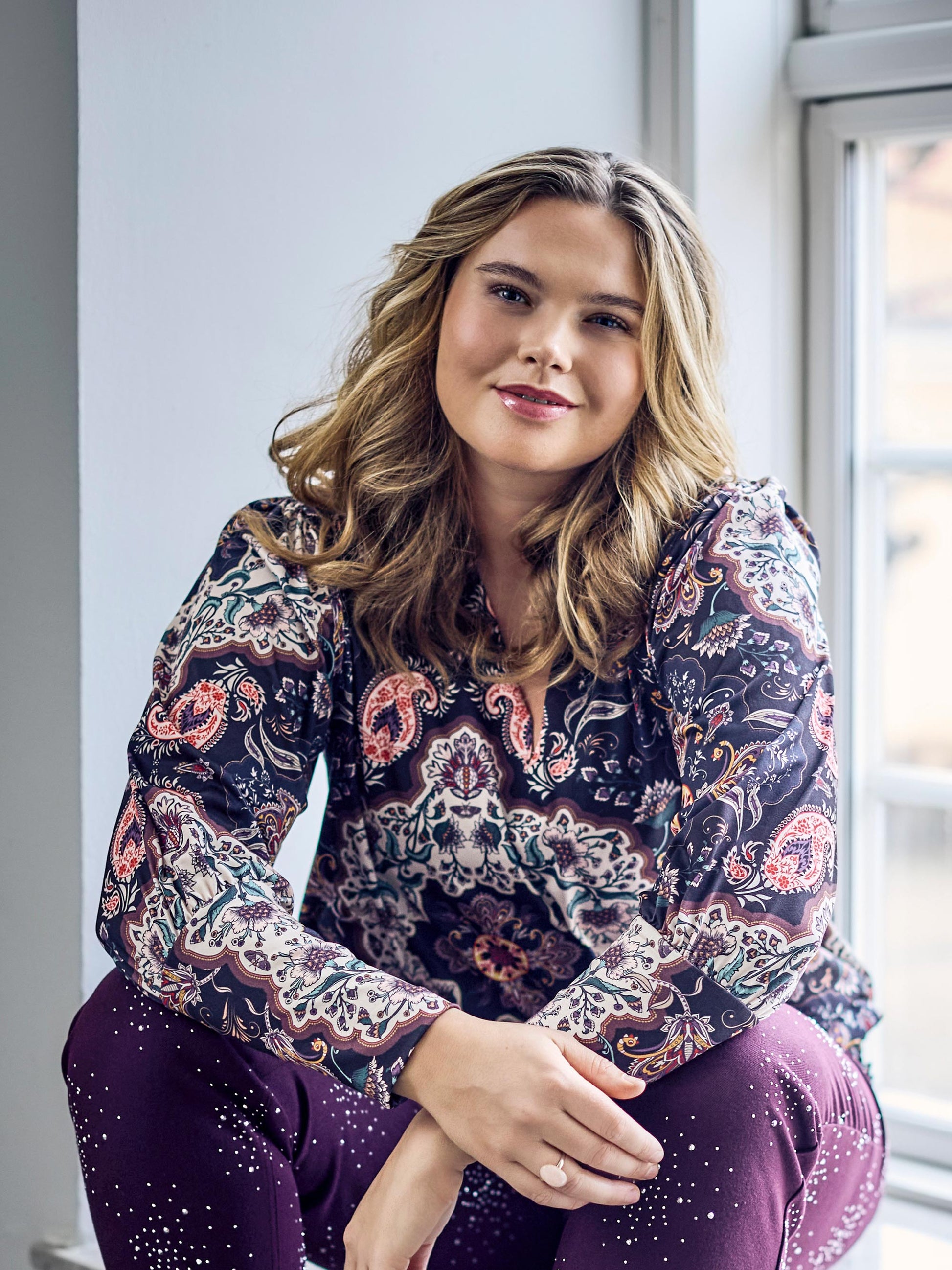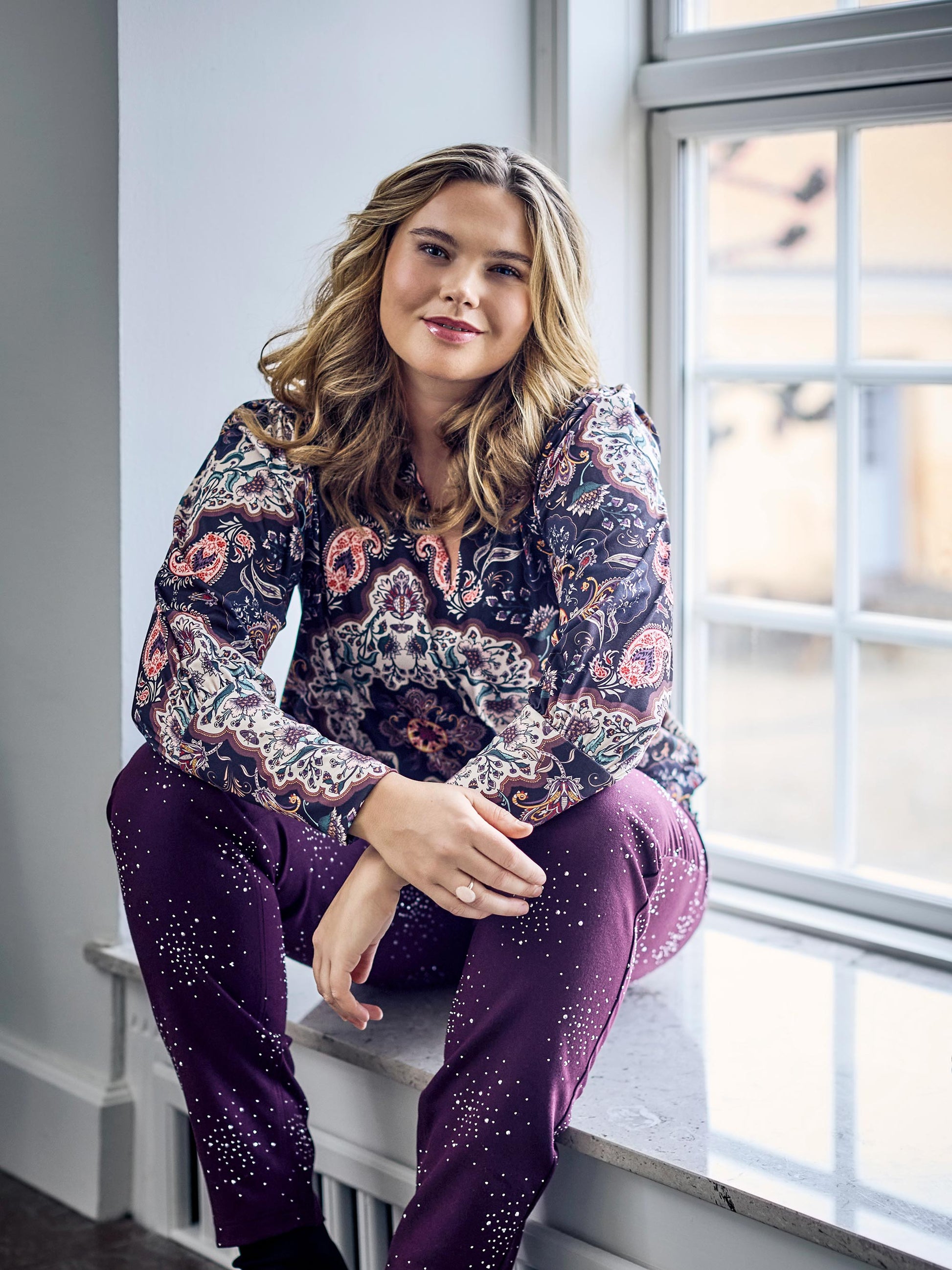 Blusen er enkel å style til mange anledninger. Kombiner den med et par plus size bukser for et avslappet hverdagsantrekk, eller med en plus size nederdel for en mer elegant look.