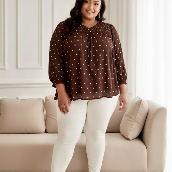 CpFIRELLA - Brun Bluse med Prikker Oversat til norsk bokmål: CpFIRELLA - Brun Bluse med Prikker