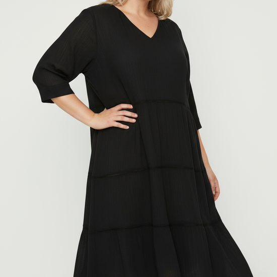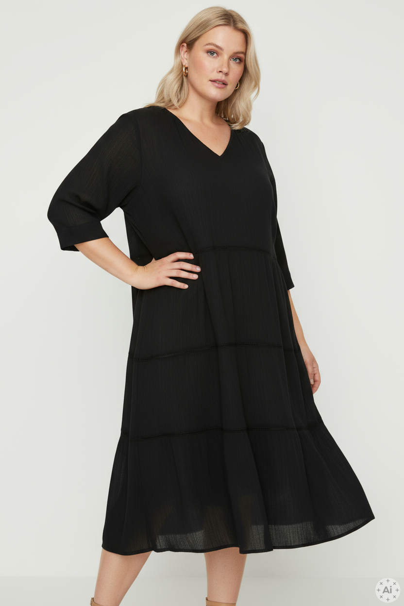Gjør denne kjolen til en sentral del av din garderobe, og opplev hvordan den enkelt kan styles til både hverdag og fest. Utforsk også vårt utvalg av plus size kjoler og andre elegante design for å finne mer inspirasjon.