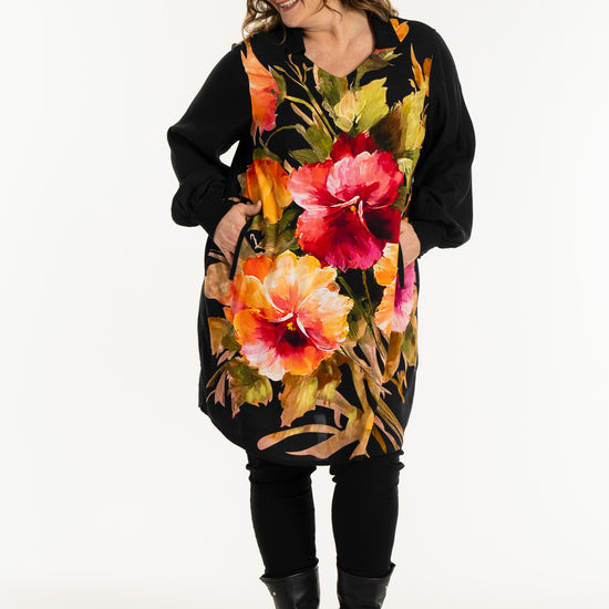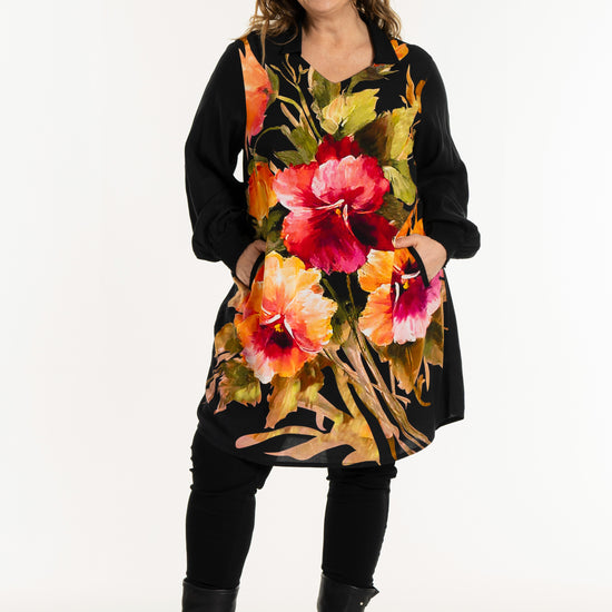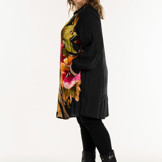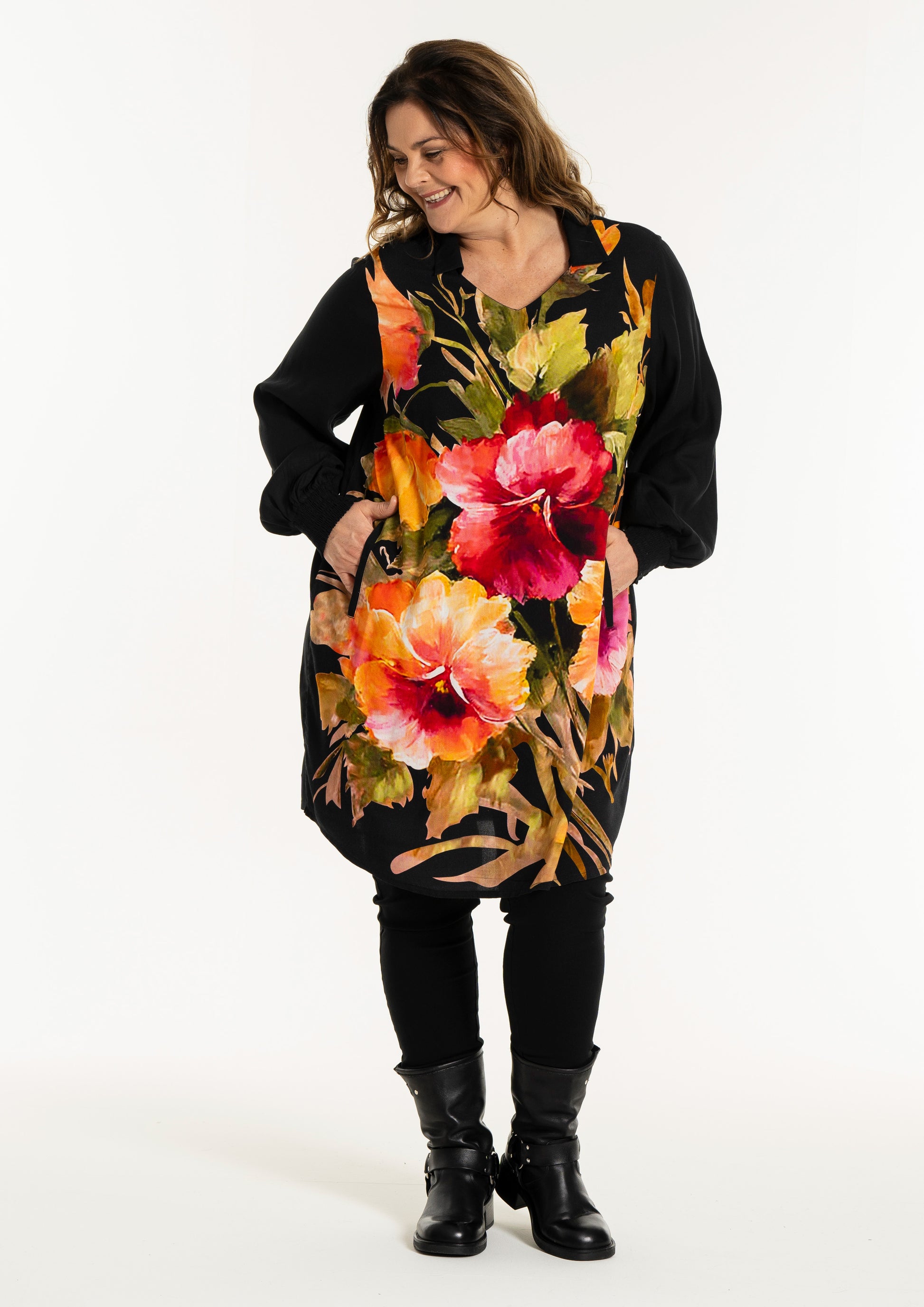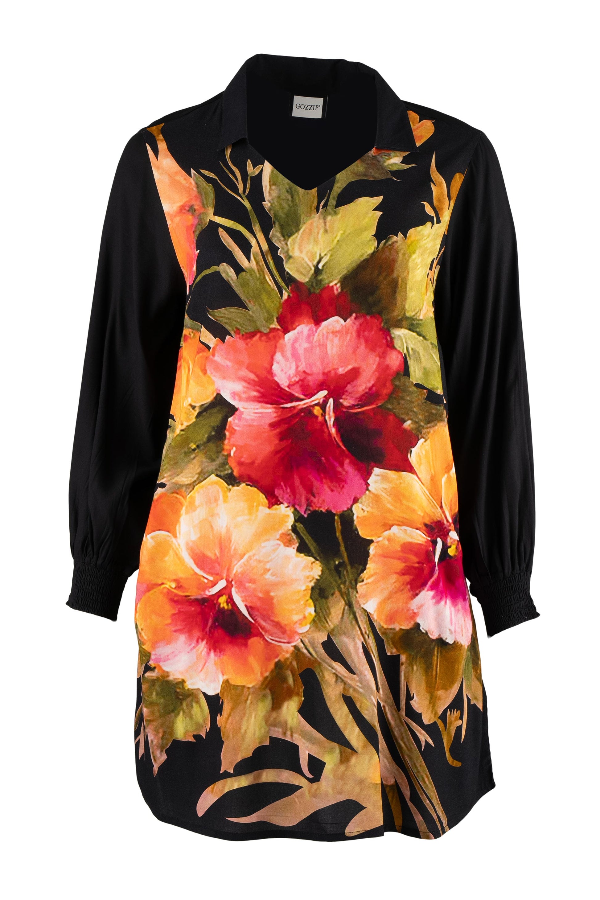 Hvis du er på jakt etter en tunika som kombinerer stil og komfort, er denne modellen fra Gozzip Woman et perfekt valg. Den er laget av 100% viskose, som gir en myk og luftig følelse mot huden. Det sorte stoffet med fargerikt print gir et moderne og feminint uttrykk, og gjør tunikaen til et blikkfang i garderoben.