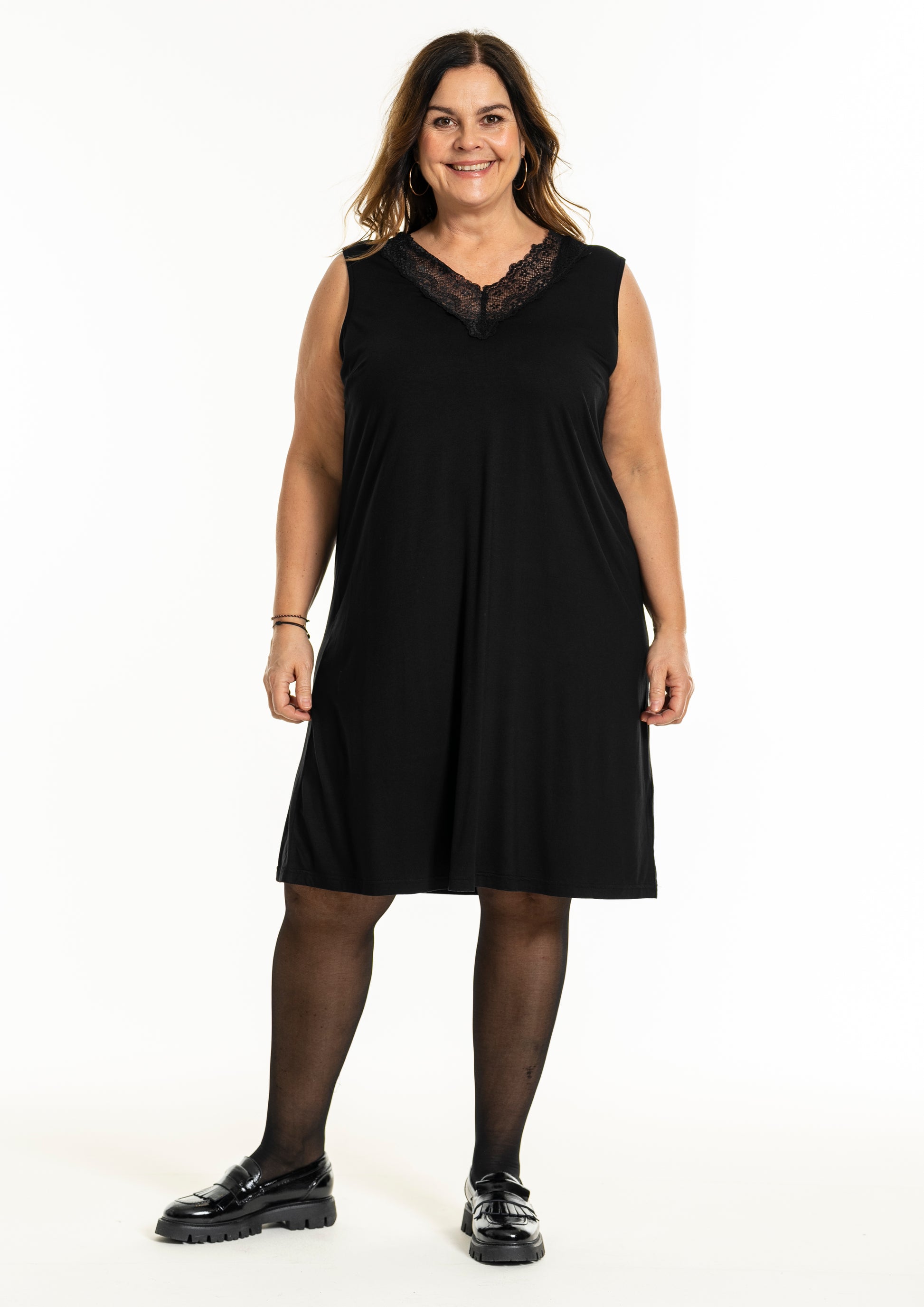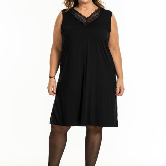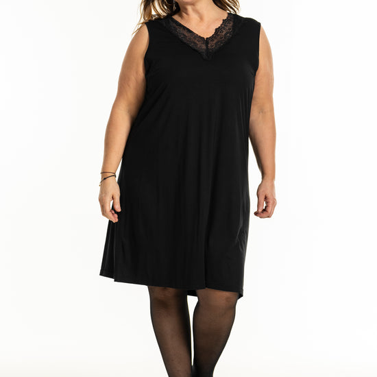Opplev den perfekte kombinasjonen av stil og komfort med denne slipsen fra Gozzip Woman. Den er laget av en luksuriøs blanding av 95 % viskose og 5 % elastan, som gir den en myk og stretchy jerseykvalitet. Slipsen har en lett A-form som sikrer en fin passform, mens den elegante V-halsen med påsydd blondekant gir et sofistikert preg. Den enkle, svarte fargen gjør denne underkjolen til et allsidig tillegg til enhver garderobe.