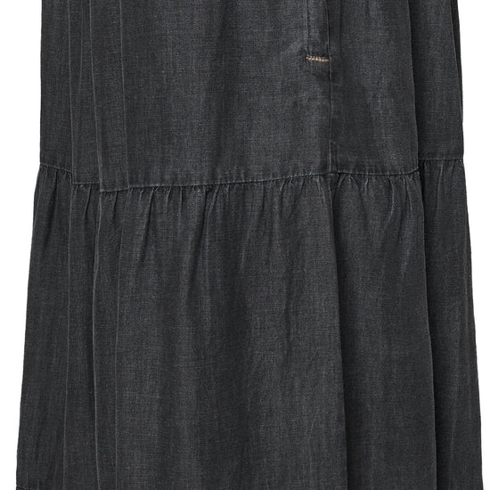 Opplev en perfekt kombinasjon av komfort og eleganse med dette vakre skjørtet fra CASSIOPEIA. Laget av 66% TENCEL og 34% bomull, tilbyr dette skjørtet en myk og pustende kvalitet som gjør det ideelt for både hverdagsbruk og festlige anledninger. Med sin gråvaskede farge, skaper skjørtet et tidløst utseende som enkelt kan matches med forskjellige topper og tilbehør.