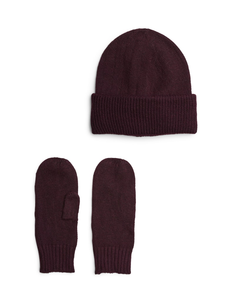 Dette settet fra Pieces kombinerer en klassisk hue og et par myke vanter i en vakker Tawny port-farge (mørkerød). Perfekt for deg som ønsker et lunt og funksjonelt tilbehør til kjølige dager. Materialet består av 70% resirkulert polyester og 30% polyester, som gir både komfort og slitestyrke. One-size passformen gjør det enkelt å bruke for de fleste.