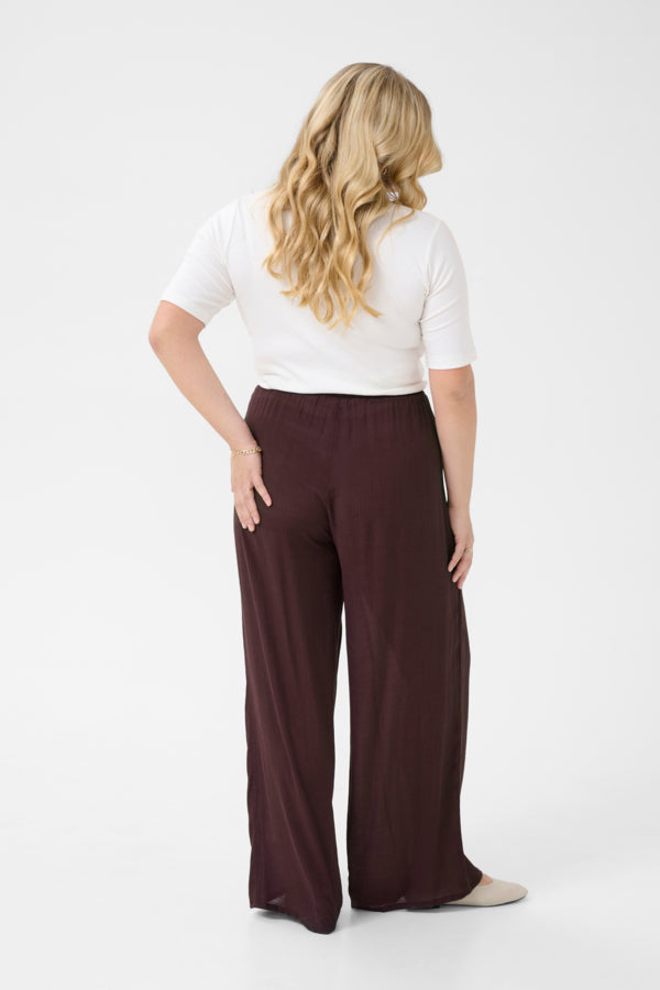 Opplev den perfekte kombinasjonen av stil og komfort med disse vakre buksene fra Kaffe Curve. Designet i en dyp 'Fudge' farge, er disse buksene ideelle for både hverdagsbruk og mer formelle anledninger. Laget av 65% viskose og 35% polyester, tilbyr de en lett og behagelig følelse, som gjør dem perfekte for enhver sesong. Den elastiske midjen sikrer en behagelig passform, mens de praktiske sidelommene tilfører funksjonalitet.