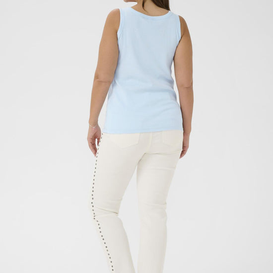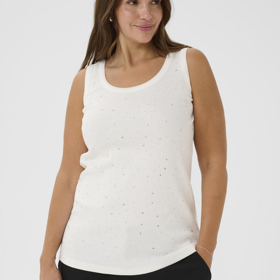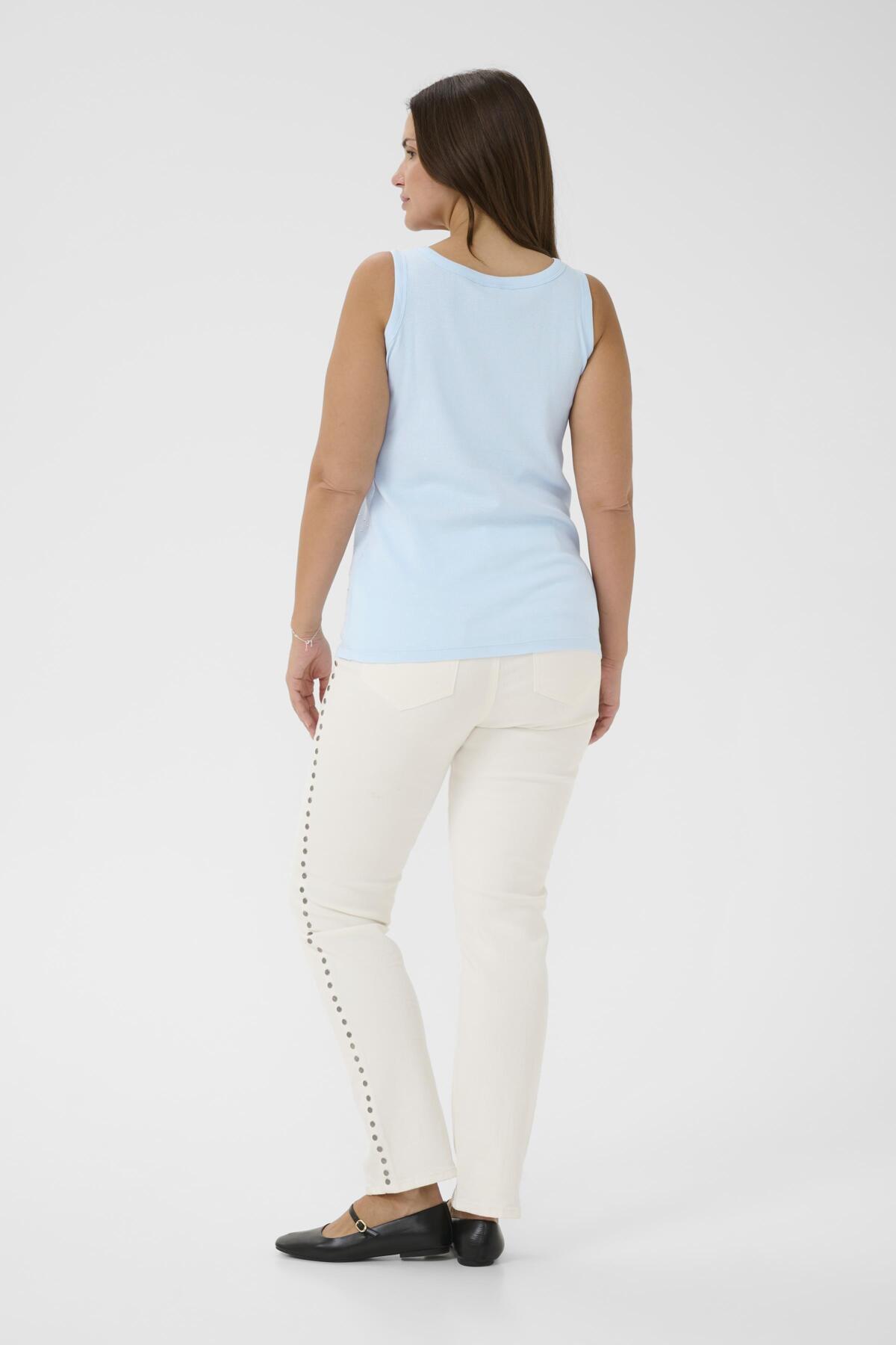 Denne nydelige toppen fra Kaffe Curve er en fantastisk oppgradering av den klassiske singleten. Modellen er designet med en flatterende rund halsutskjæring og brede stropper som sikrer en behagelig passform gjennom hele dagen.