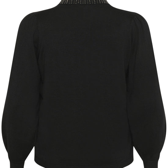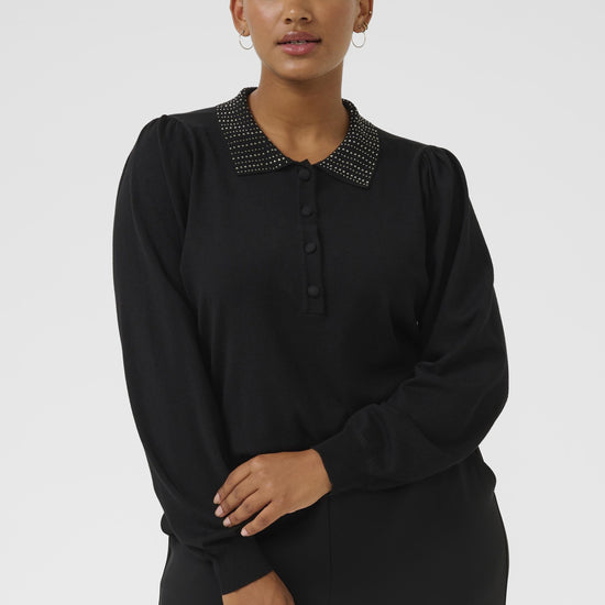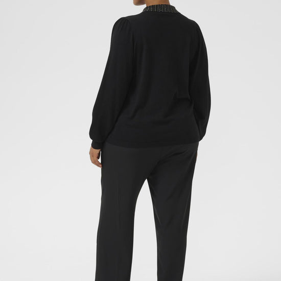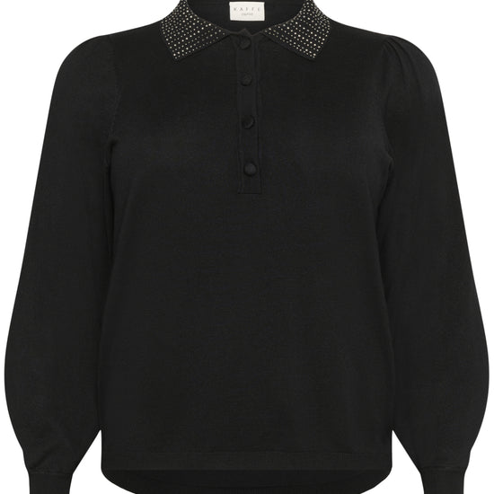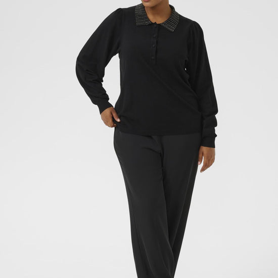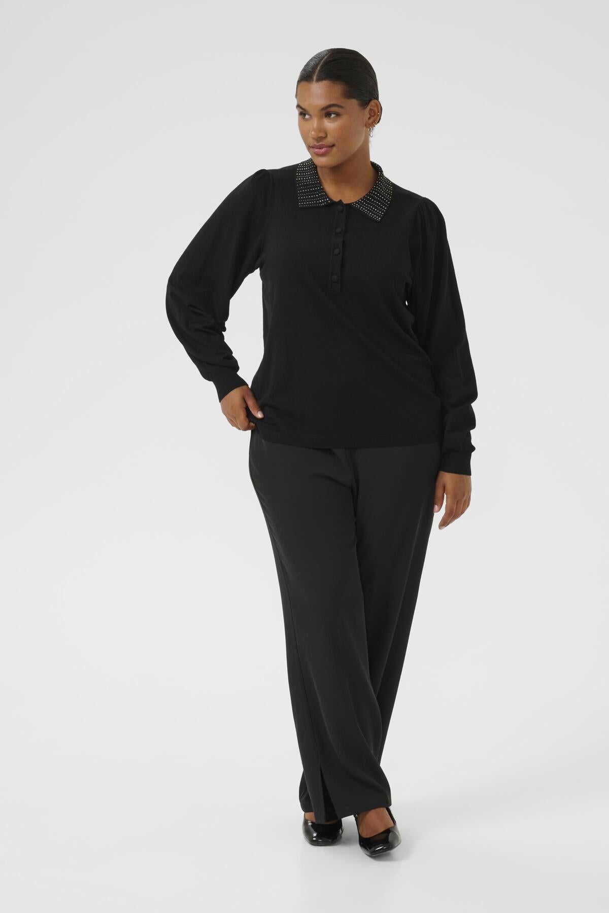 Opplev tidløs eleganse med denne sorte strikkede blusen fra Kaffe Curve. Laget i en myk og elastisk blanding av 80% viskose og 20% nylon, byr den på komfort og et flatterende fall. Nøkkeldetaljer: