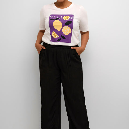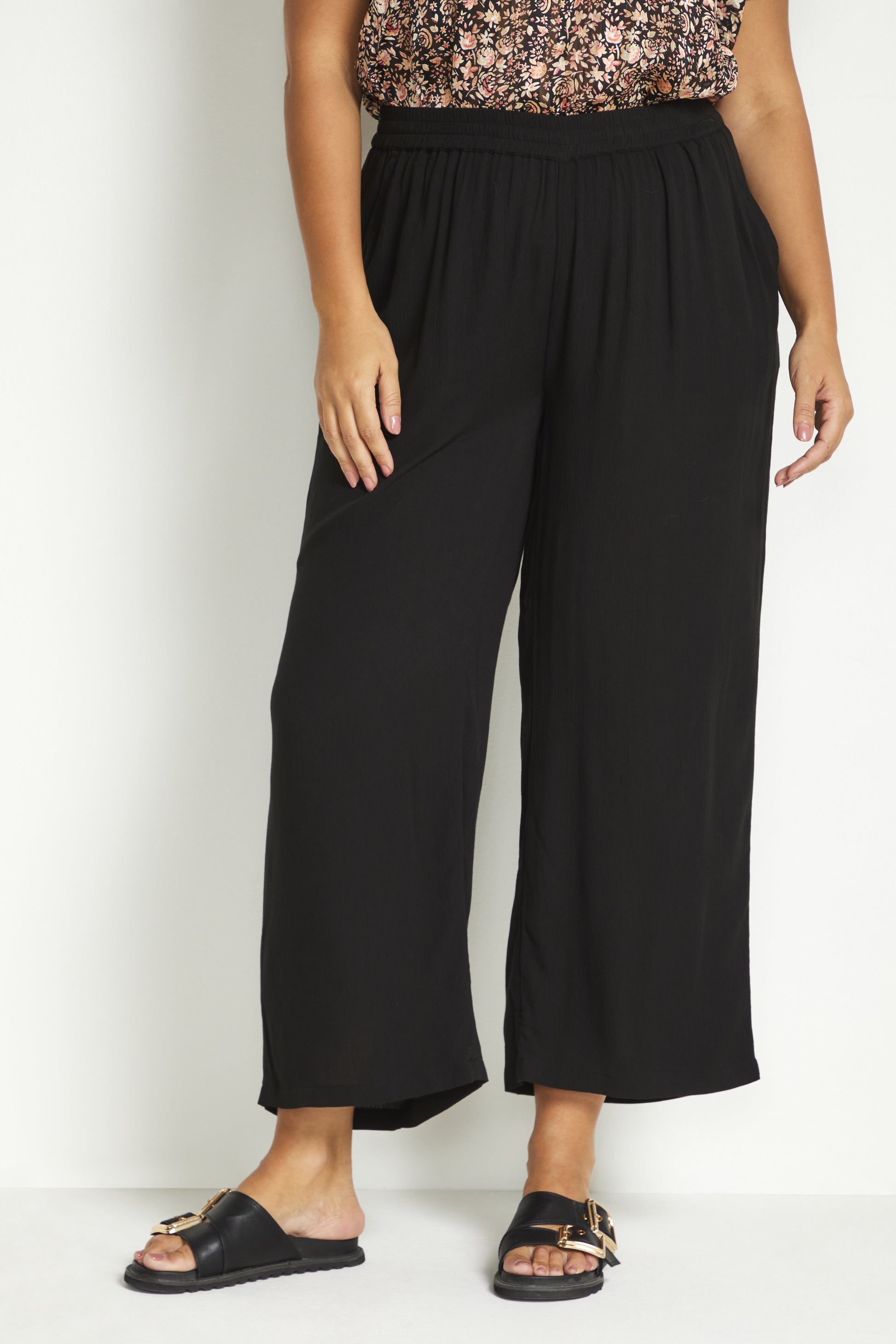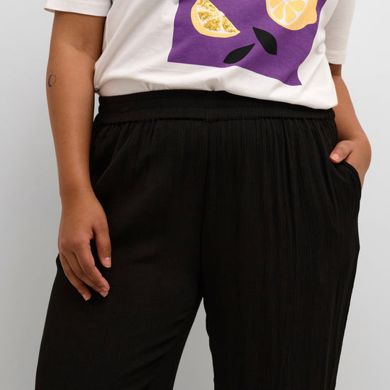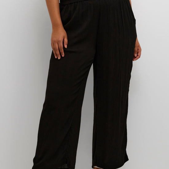 Møt de stilfulle culotte buksene fra Kaffe Curve, hvor komfort møter eleganse på en unik måte. Disse buksene er laget av 100% viskose, noe som gjør dem lette og behagelige å ha på, samtidig som de gir et luksuriøst uttrykk. Med sine vide ben og elastiske midje er de perfekte for både hverdagsbruk og festlige anledninger. Tilgjengelig i klassisk sort og i størrelser fra 42 til 54, er disse buksene et allsidig valg for enhver garderobe.