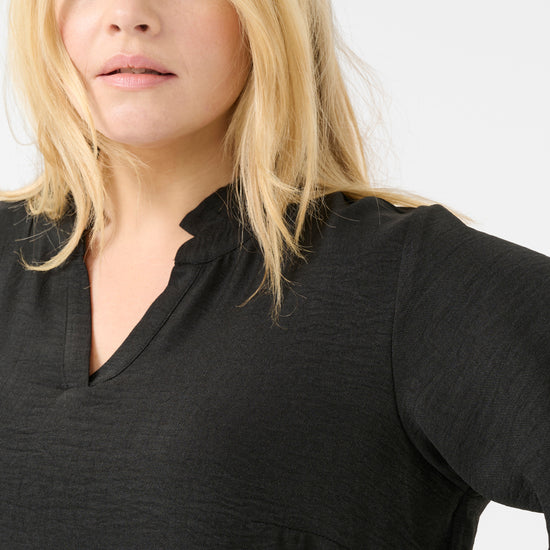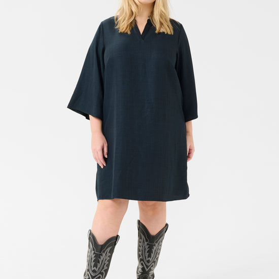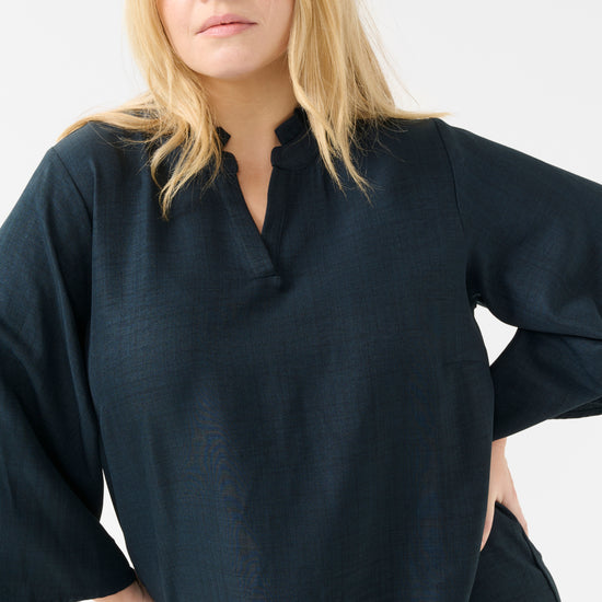 Med sitt klassiske uttrykk og behagelige materiale er denne tunikaen et must for deg som ønsker fleksibilitet og stil. Den mørke fargen gjør det enkelt å kombinere med både accessories og sko, slik at du kan skape din egen unike stil. Passer like godt til kontoret som til en kveld ute med venner.