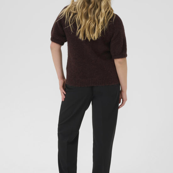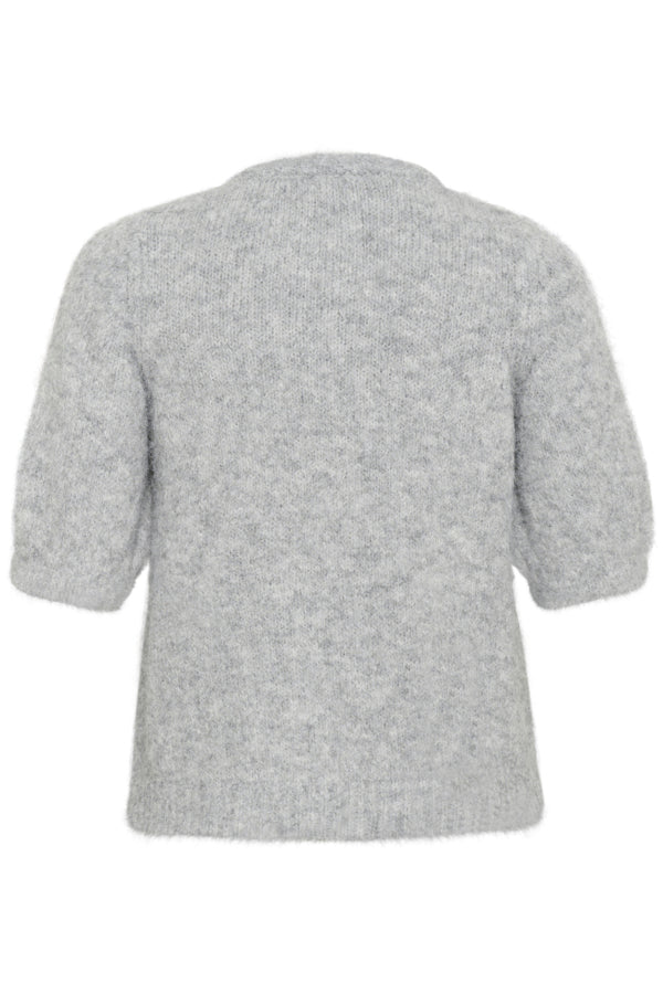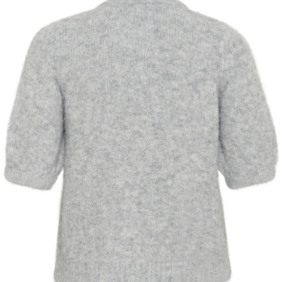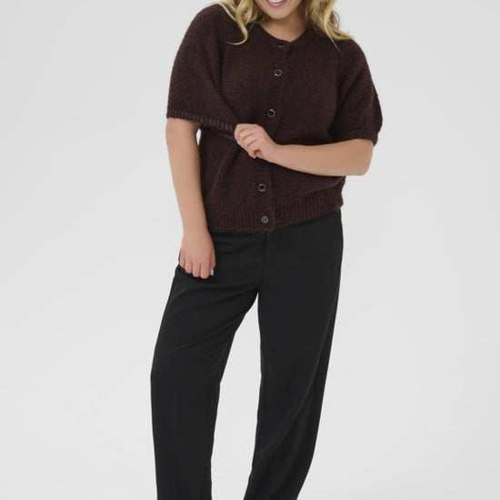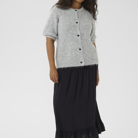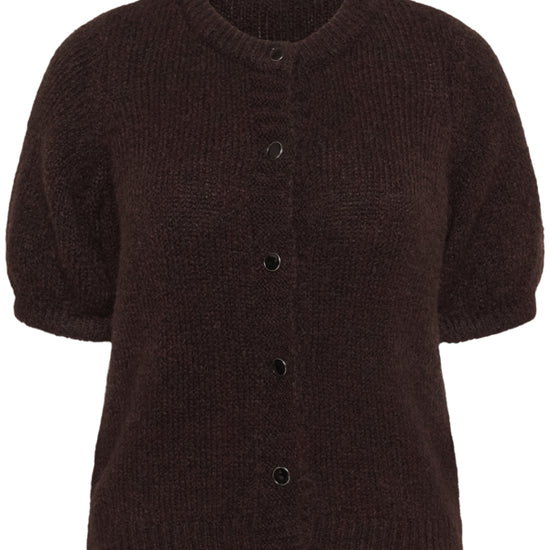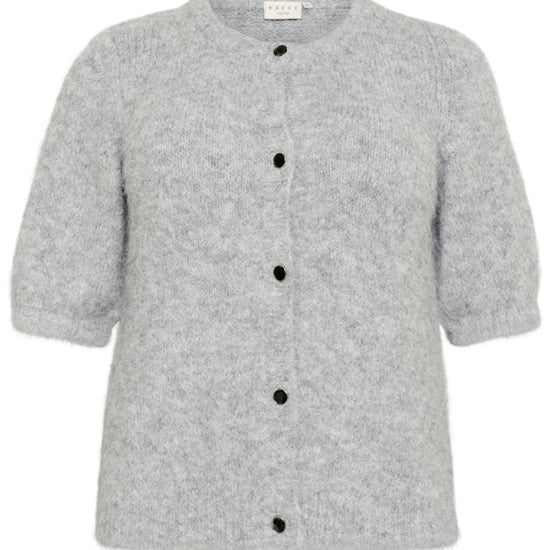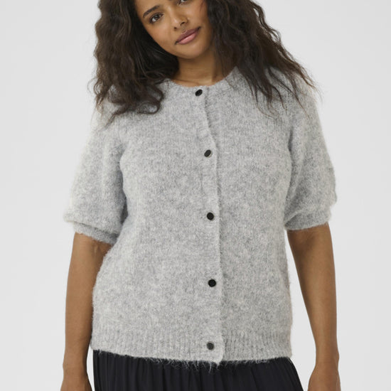 Cardiganen har en tidløs rund halsutskjæring og korte ermer, som gjør den allsidig og lett å style. De sorte knappene foran tilfører et klassisk preg til det moderne designet.