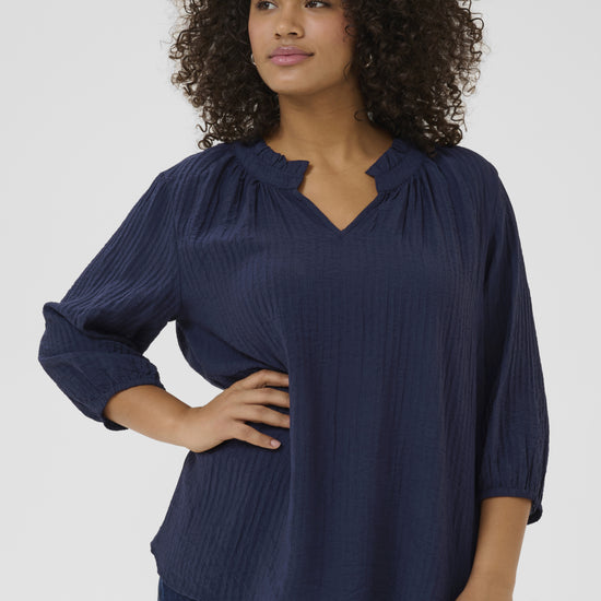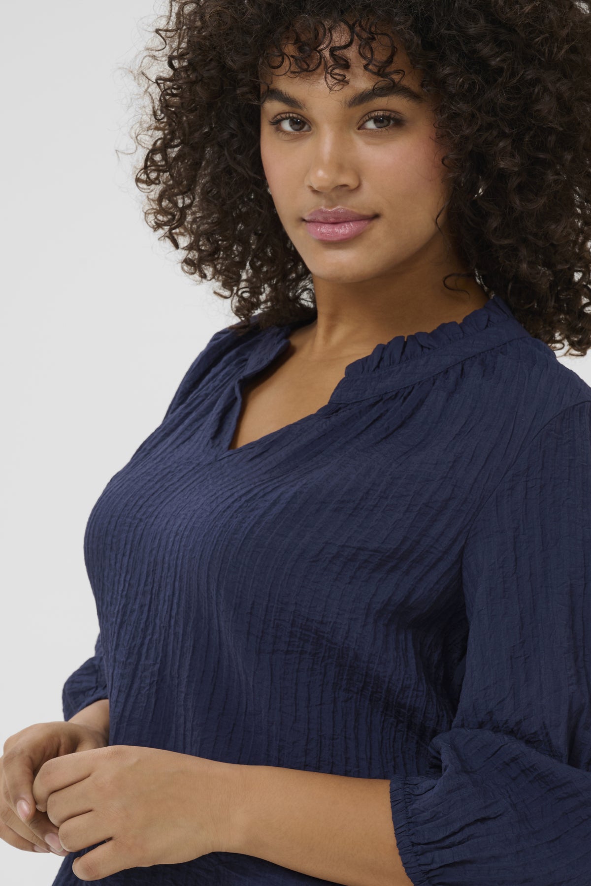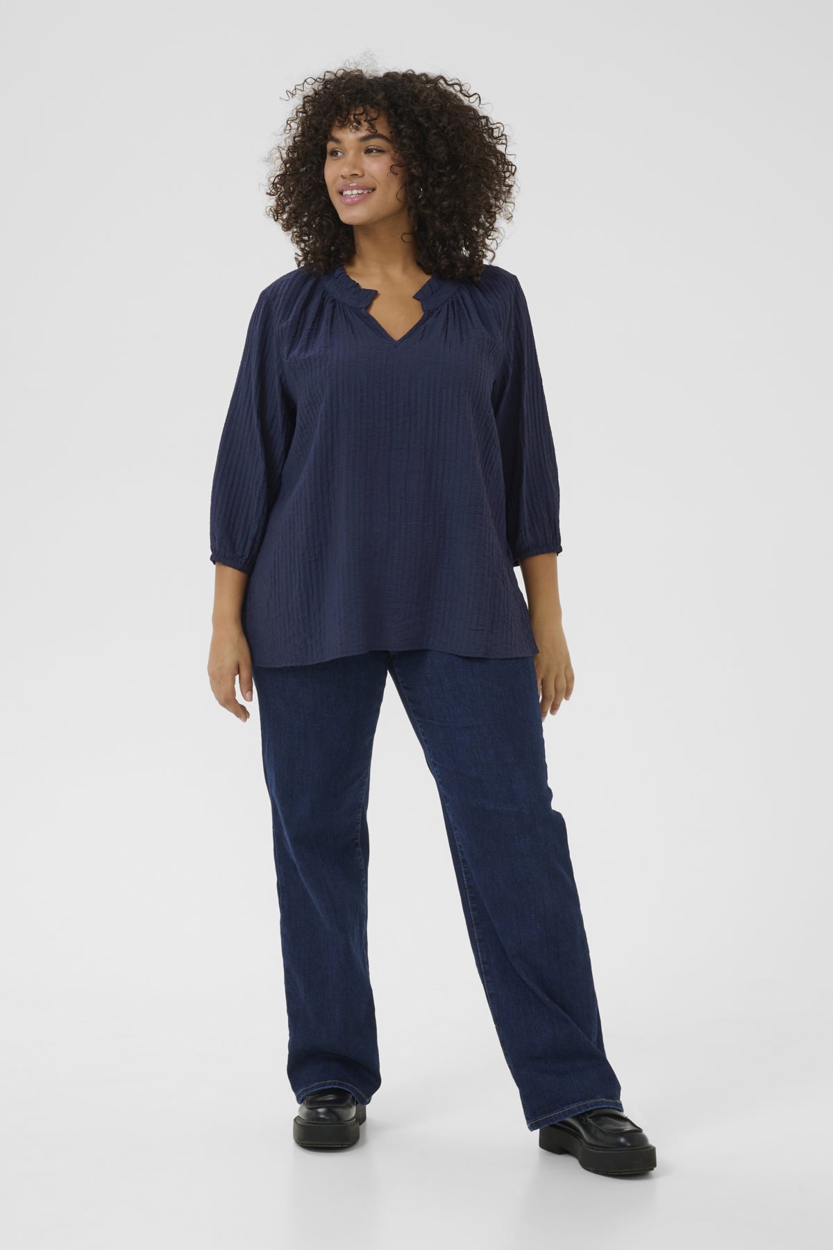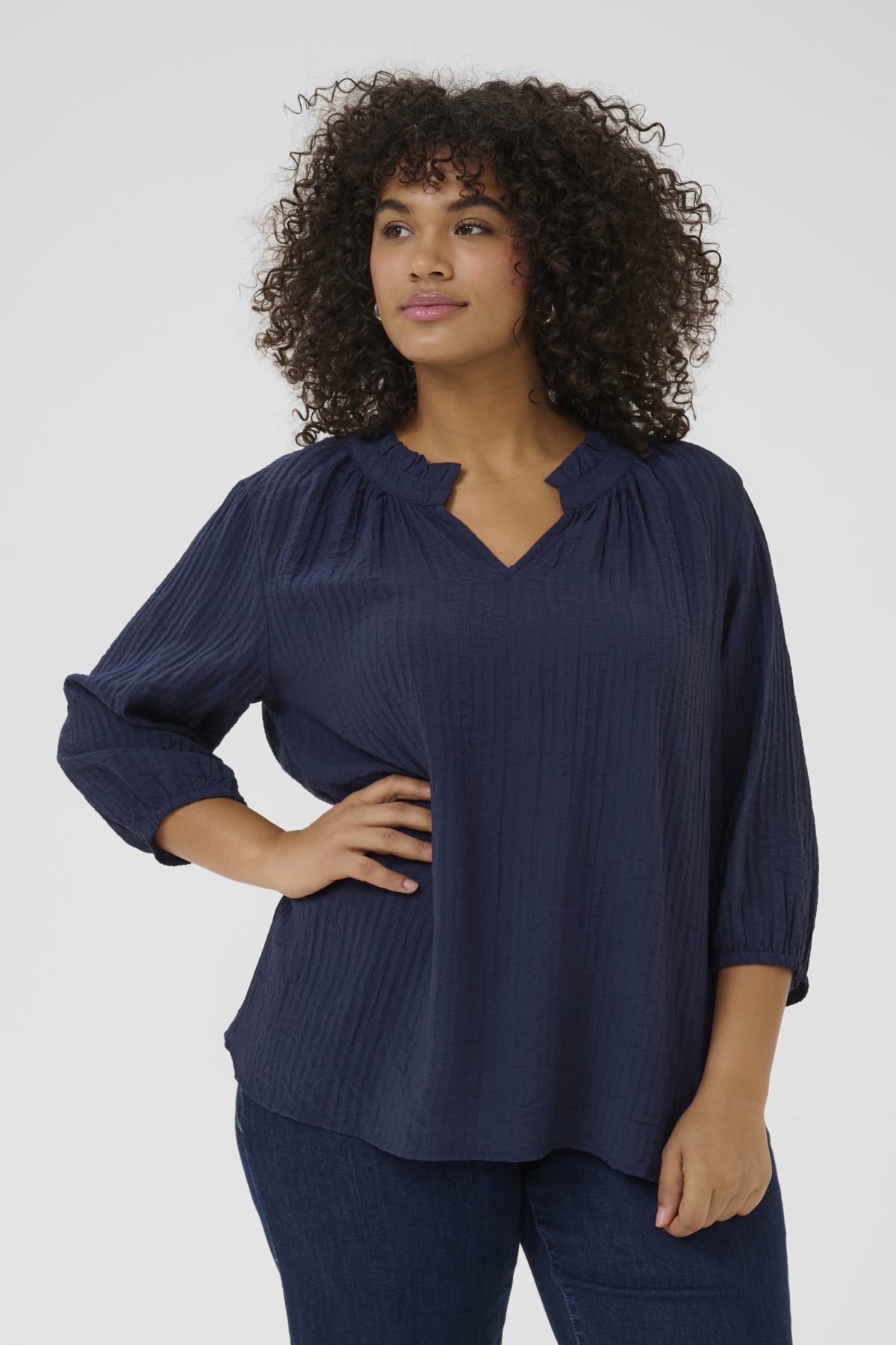 Klassisk bluse i Midnight Marine fra Kaffe Curve