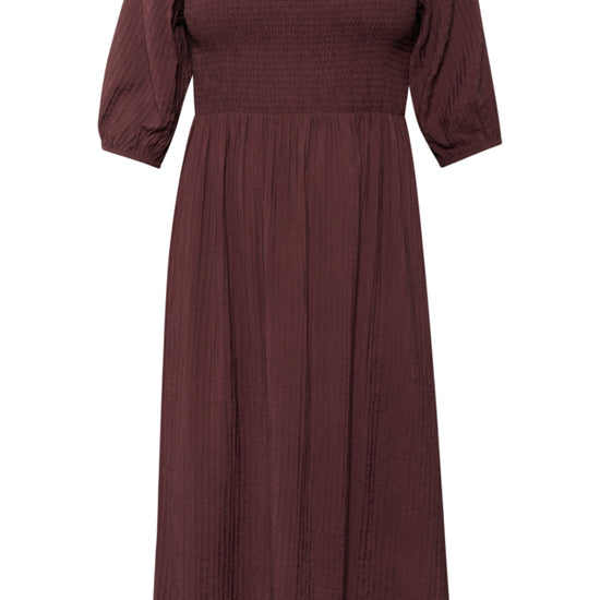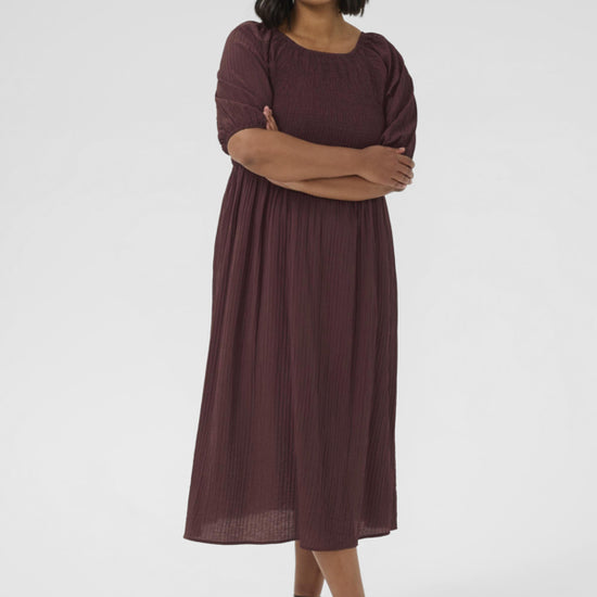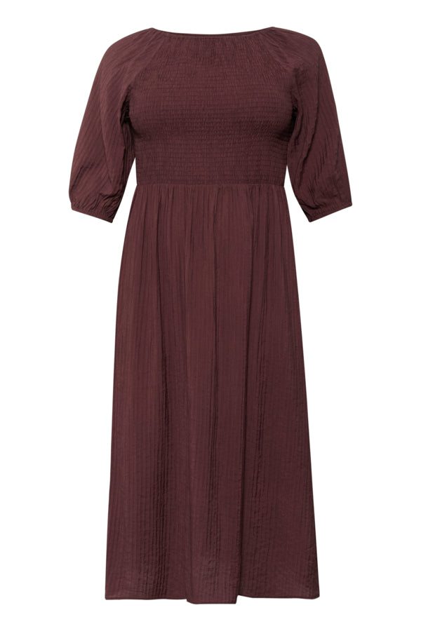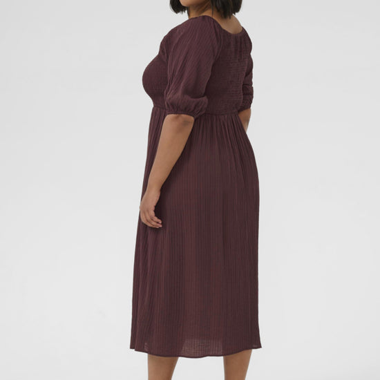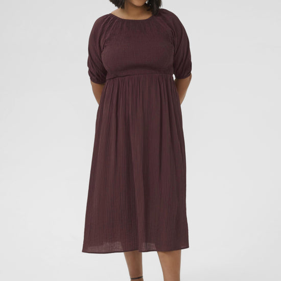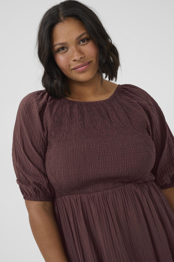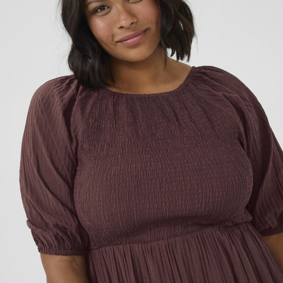 Opplev den perfekte kombinasjonen av stil og komfort med denne vakre kjolen fra Kaffe Curve. Laget i en luksuriøs blanding av 80% viskose og 20% nylon, tilbyr denne kjolen en myk og behagelig passform. Den dype fudge-fargen tilfører en sofistikert og moderne dimensjon som gjør kjolen ideell for både hverdagsbruk og spesielle anledninger.