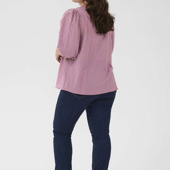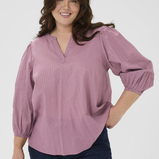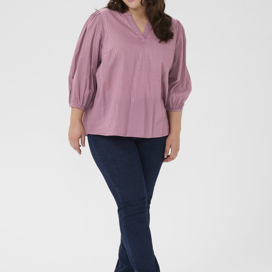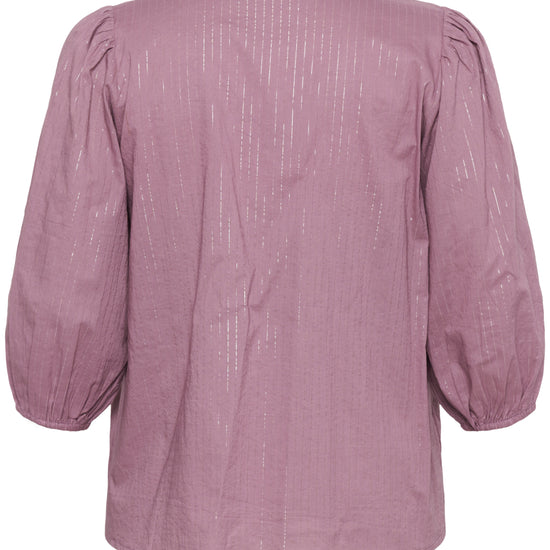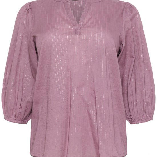 Gi garderoben din et løft med denne vakre blusen fra Kaffe Curve i fargen Tulipwood. Den er laget av 98% bomull og 2% polyester, og har innvevde sølv glimmertråder som gir et subtilt, feminint uttrykk. Passformen er løs og behagelig, perfekt for deg som ønsker både stil og komfort.