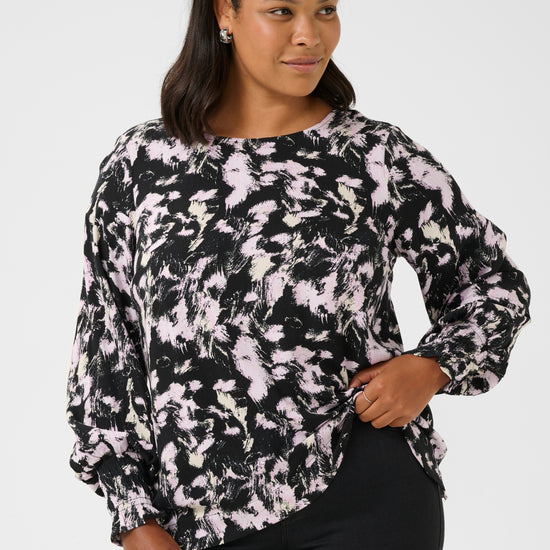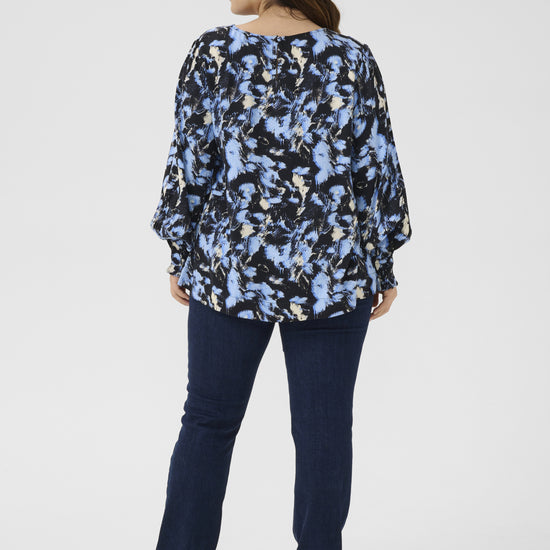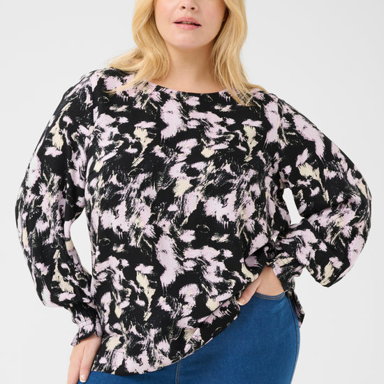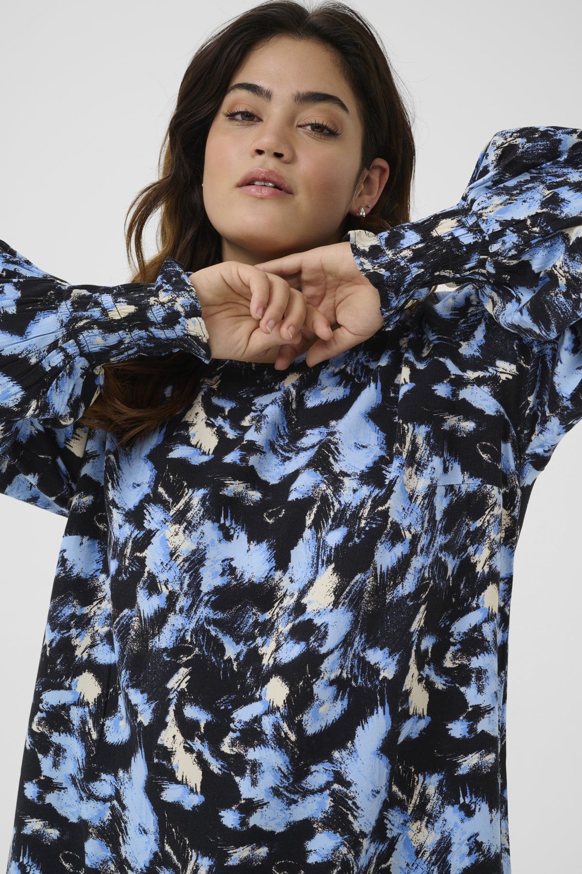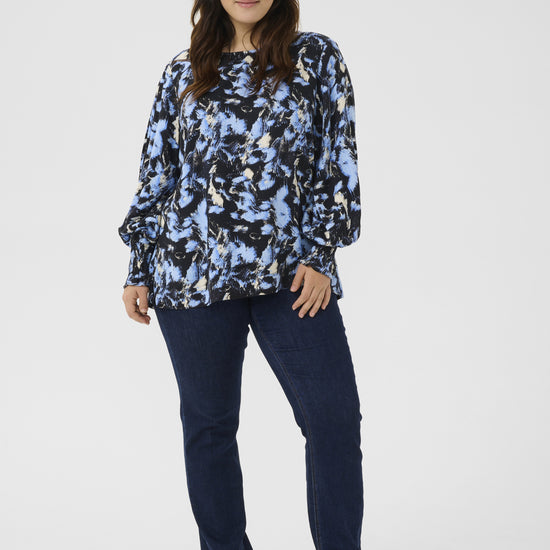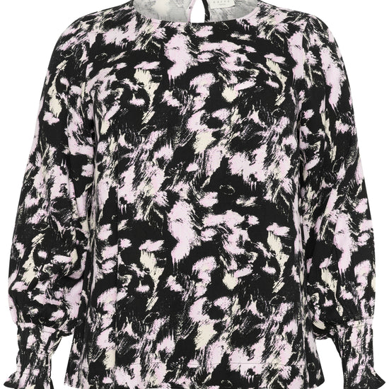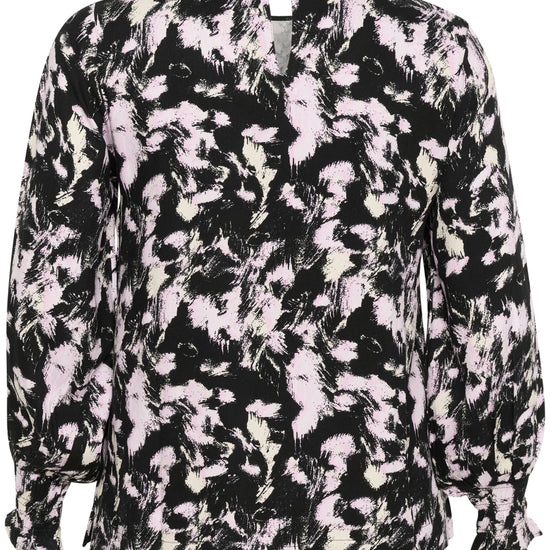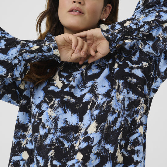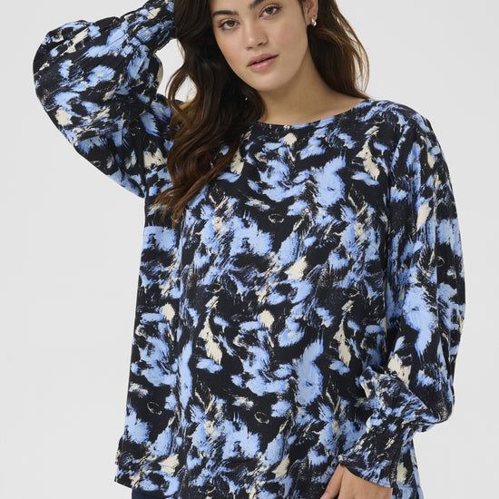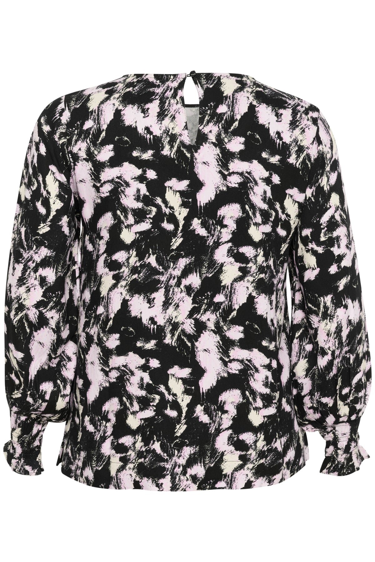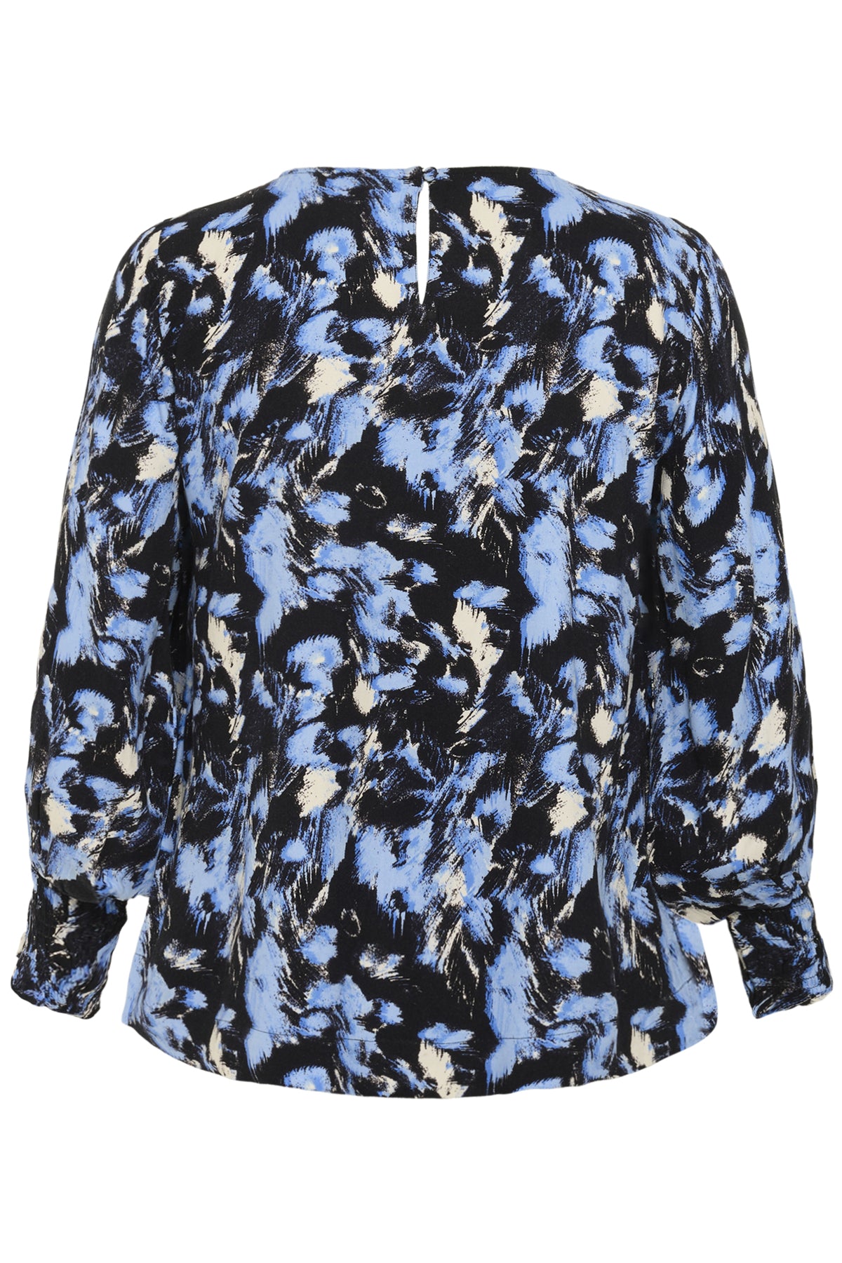 Oppdater garderoben med denne flotte blusen fra Kaffe Curve, designet spesielt for plus size. Den er laget i 100% viskose (LENZING™ ECOVERO™) som gir en lett og behagelig følelse hele dagen. Velg mellom to moderne fargekombinasjoner: sort/blå eller sort/rosa grafiske strøk. Blusen har en løs og komfortabel passform, lange ermer med elastikk ved håndleddene og en elegant, rund hals.