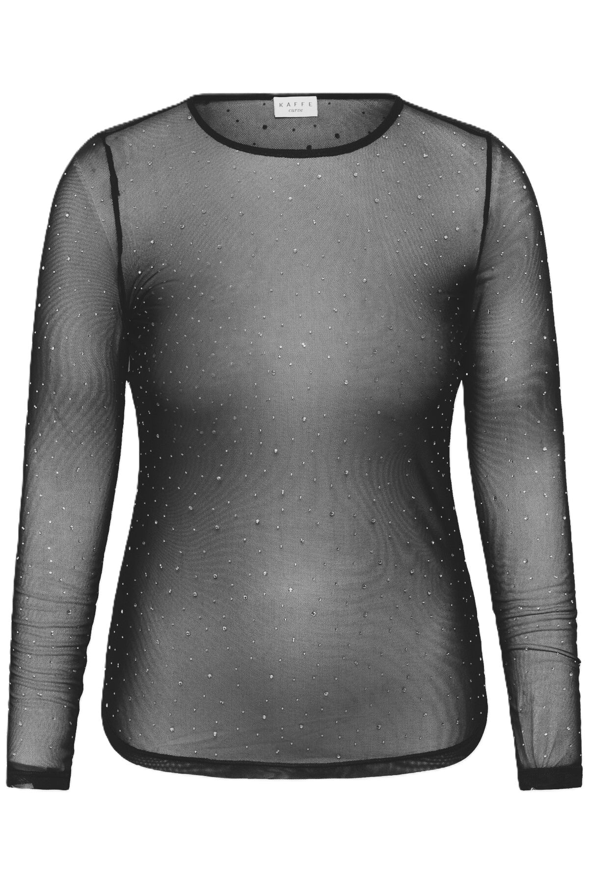 Gi antrekket ditt et sofistikert løft med denne svarte blusen fra Kaffe Curve. Blusen er dekorert med små perler over hele overflaten – en detalj som gir et eksklusivt og feminint uttrykk. Materialet har god stretch og komfort, takket være blandingen av 93% polyester og 7% elastan.