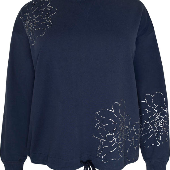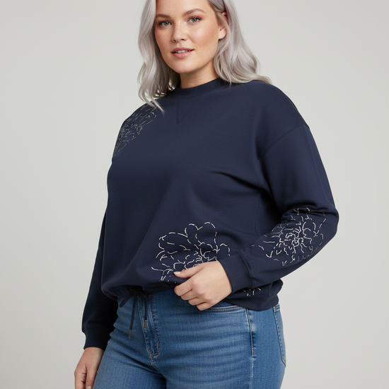 Opplev en tidløs og feminin stil med denne flotte blusen fra Cassiopeia. Blusen er laget i 100% bomull, noe som gir deg en myk og pustende kvalitet – perfekt til både jobb og fritid. Den dype navyfargen kombineres med subtile blomsterbroderier, som gir et ekstra elegant uttrykk. Passformen er avslappet, og ribkantene ved hals og ermer sørger for ekstra komfort.