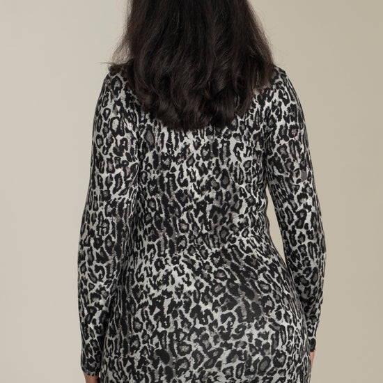 Smart under en kjole hvor du kan se leo-printet på halsen og ermene eller under en sweatshirt hvor du kan se det på ermene og underdelen.
