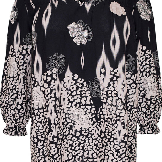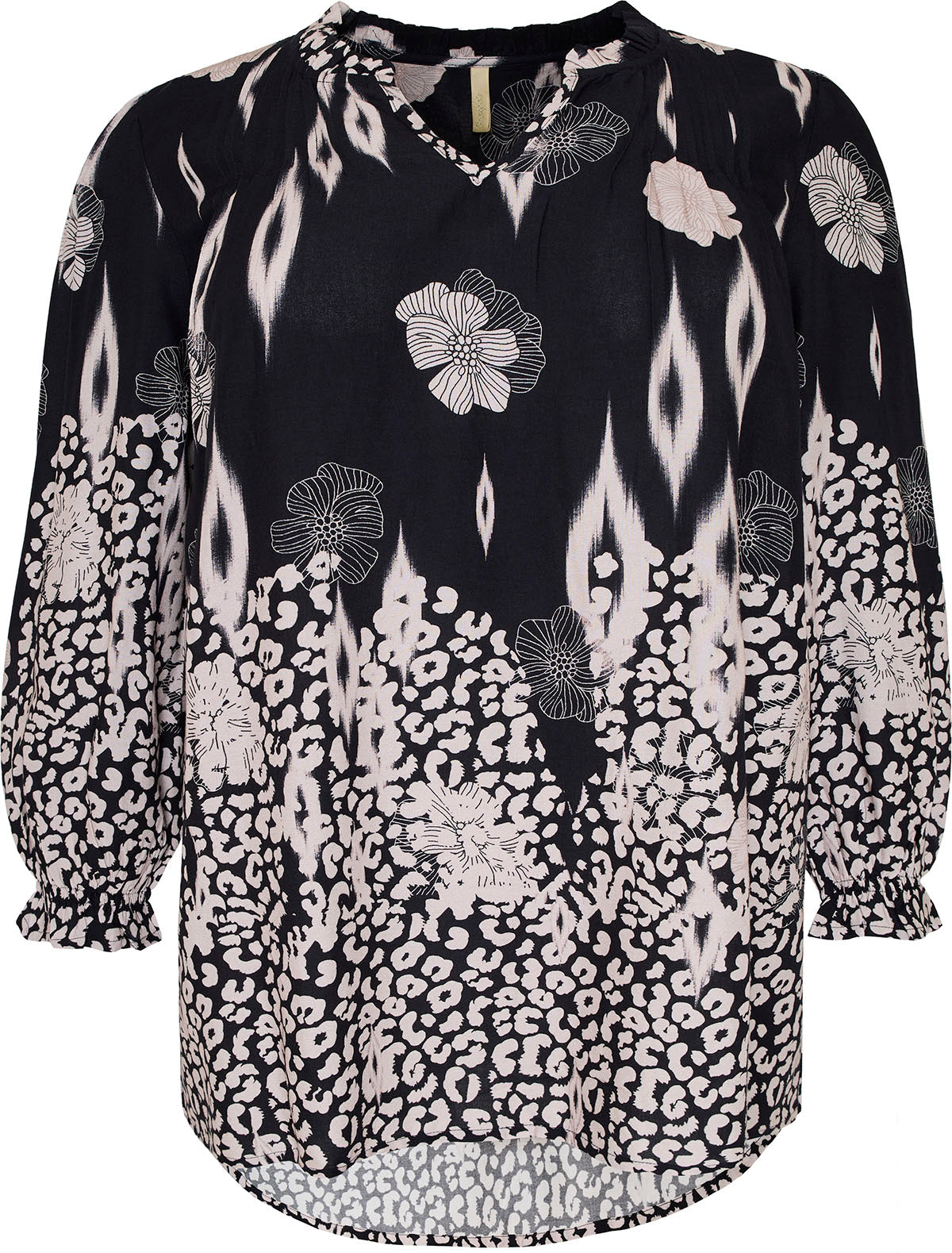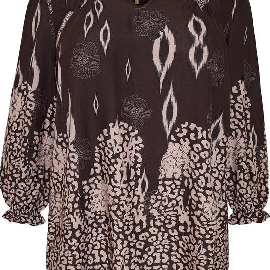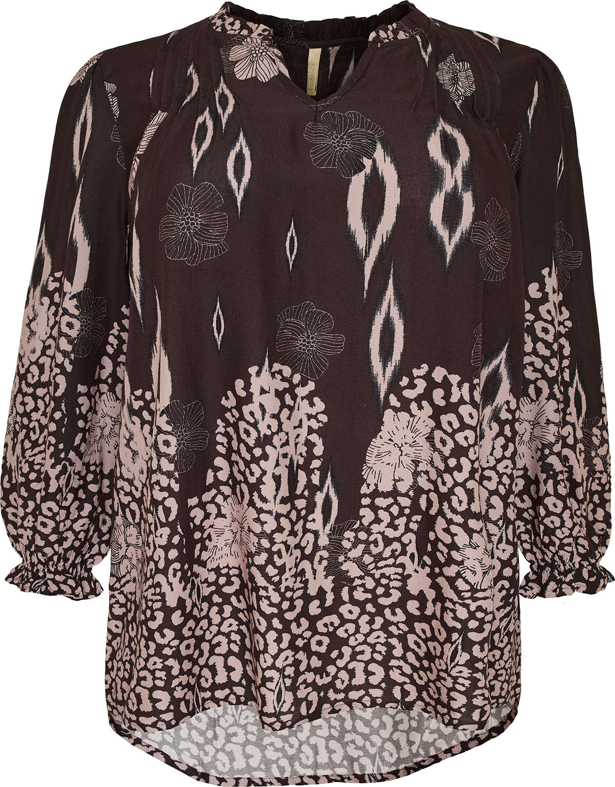Opplev en bluse fra CASSIOPEIA som kombinerer et lekkert sort og brunt mønster med en løs, flatterende fasong. Blusen har: