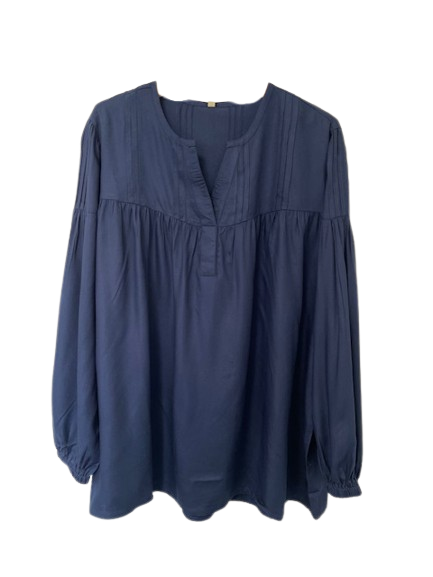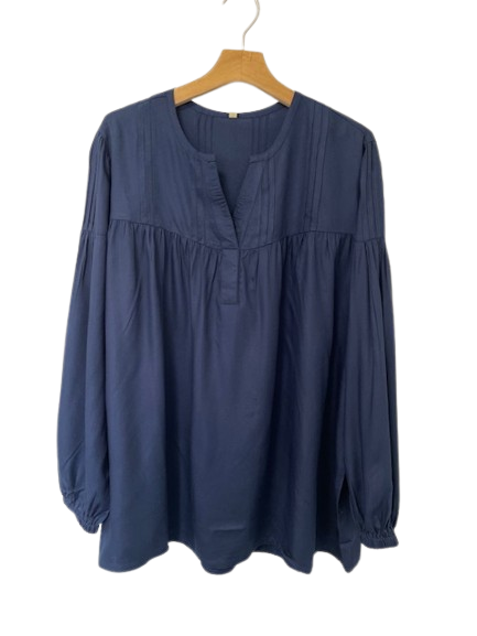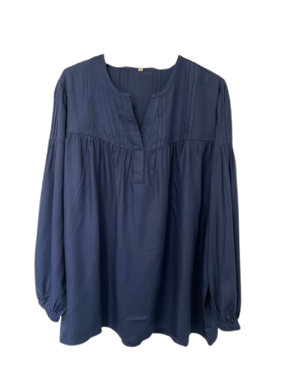 Opplev en elegant og tidløs bluse fra Cassiopeia i dyp navy. Blusen er laget i 100% viskose, som gjør den ekstra myk og behagelig mot huden. Den har et avslappet snitt med lange, løse ermer og en flatterende passform.