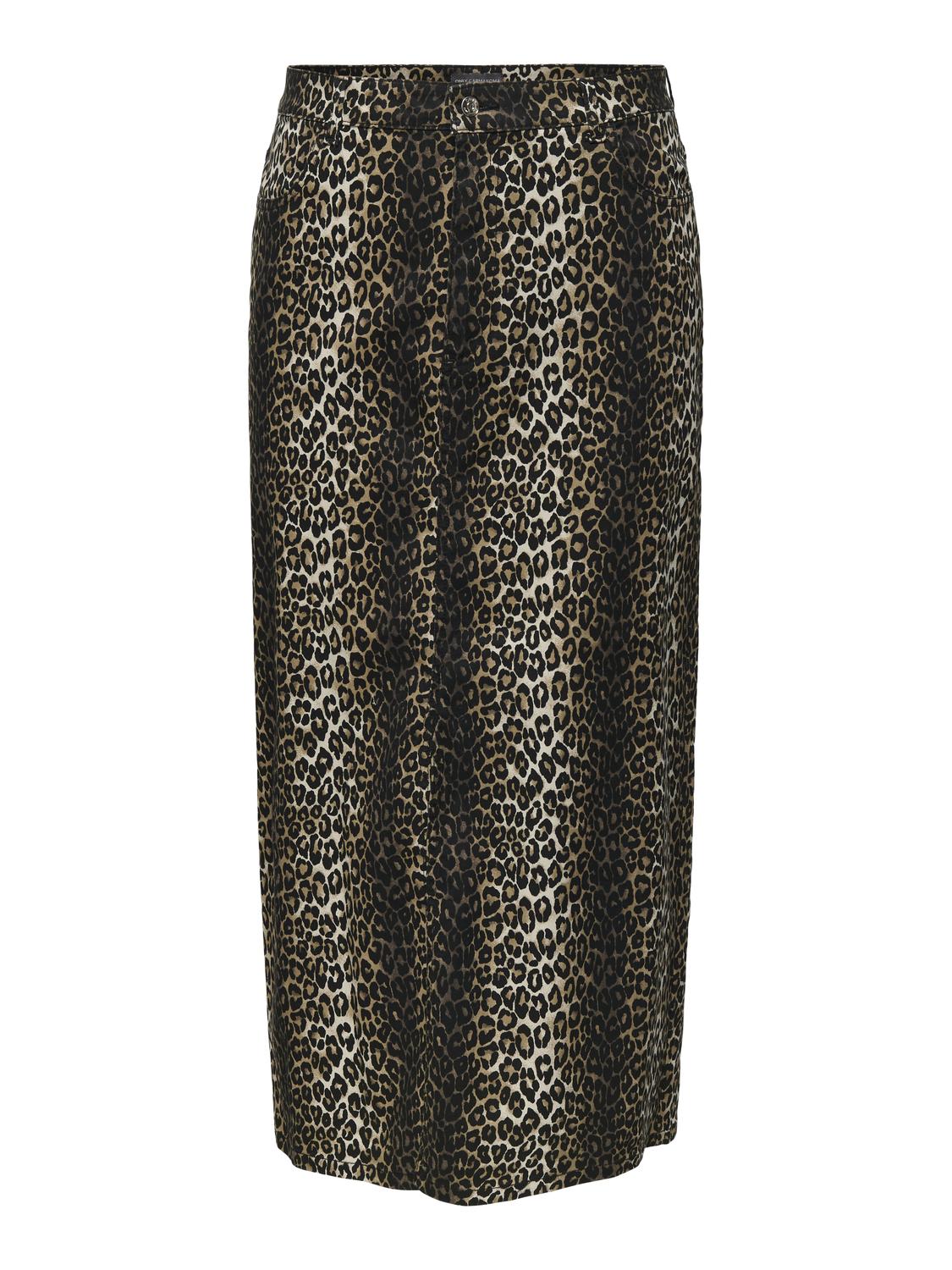 Træd inn i en verden av stil og selvtillit med denne fantastiske nederdelen fra ONLY CARMAKOMA. Designet med et klassisk leopardmønster, kombinerer denne nederdelen nyanser av svart, brun og beige for å skape et tidløst mønster som aldri går av moten.