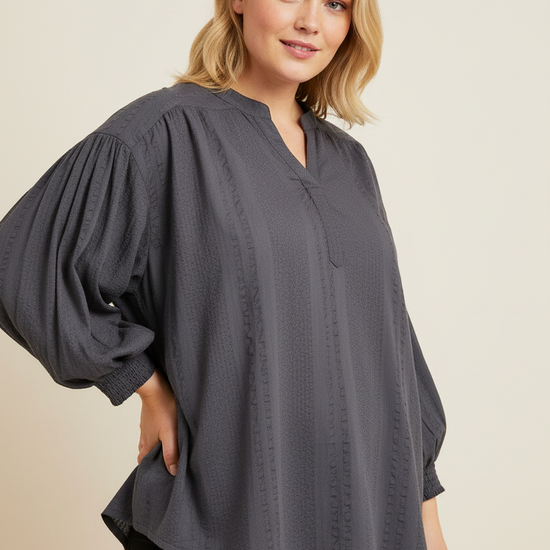 Den mørkegrå fargen gjør det enkelt å style blusen både til plus size jeans og plus size bukser for et avslappet eller mer formelt antrekk.