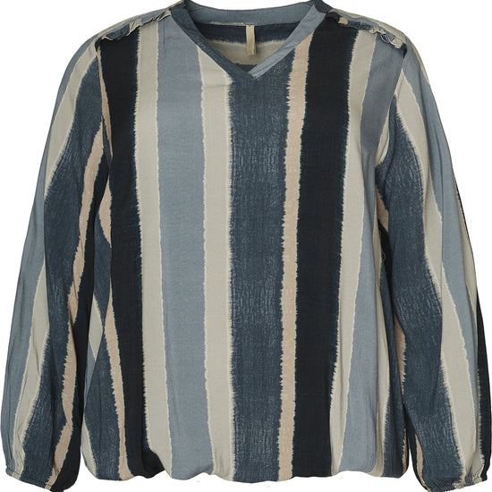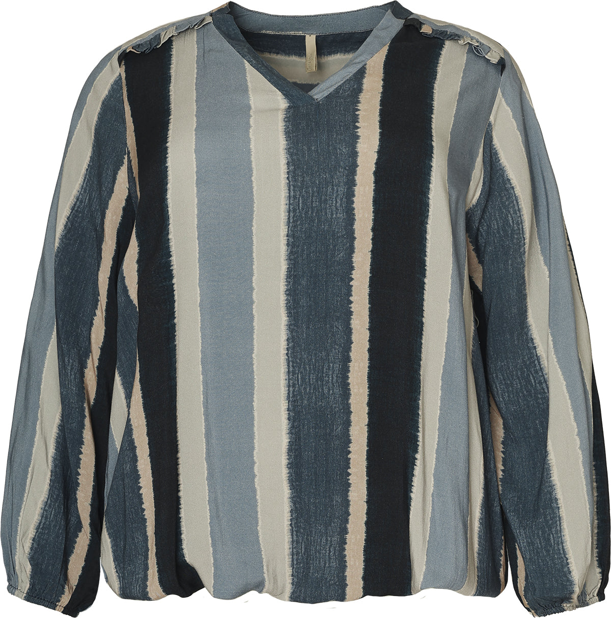 En elegant bluse fra Cassiopeia som gir deg både komfort og et stilrent uttrykk. Blusen er laget av 100% viskose, noe som gir en myk og luftig følelse mot huden. Med sitt løse fit og vakre blå kombinasjon av striper, blir dette et plagg du kan bruke til både hverdags og finere anledninger.