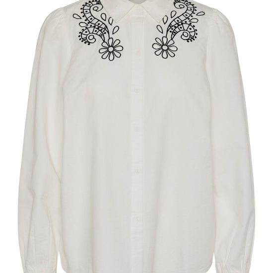 Tilgjengelig i størrelser fra 44 til 54, passer denne skjorten perfekt til enhver kurvet silhuett. Den er laget i en stilig 'Cloud Dancer'-farge med svart broderi, noe som sikrer en trendy og allsidig stil.