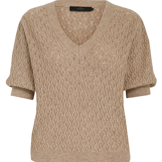 Oplev den perfekte kombination af stil og komfort med Rosalia T-Shirt fra Peppercorn. Denne t-shirt er designet med puffede ærmer og en flatterende V-udskæring, der giver et feminint og moderne udtryk. Det smukke mønster gør t-shirten ekstra iøjnefaldende, og med en normal pasform er den ideel til enhver kropsform.