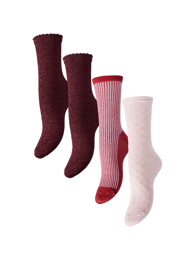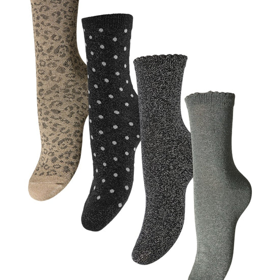 Glitrende strømper fra Pieces – 4-pak med festlig effekt