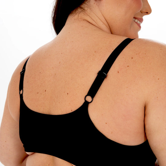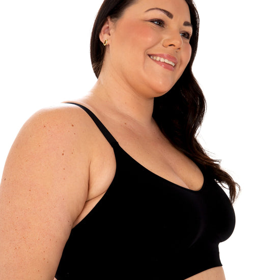 Oppnå den perfekte balansen mellom støtte og komfort med Pamela Manns sømløse undertøysserie. Denne elegante svarte BH-en er designet for å gi en jevn og enkel silhuett som komplimenterer kroppen din uten å gå på kompromiss med komforten.