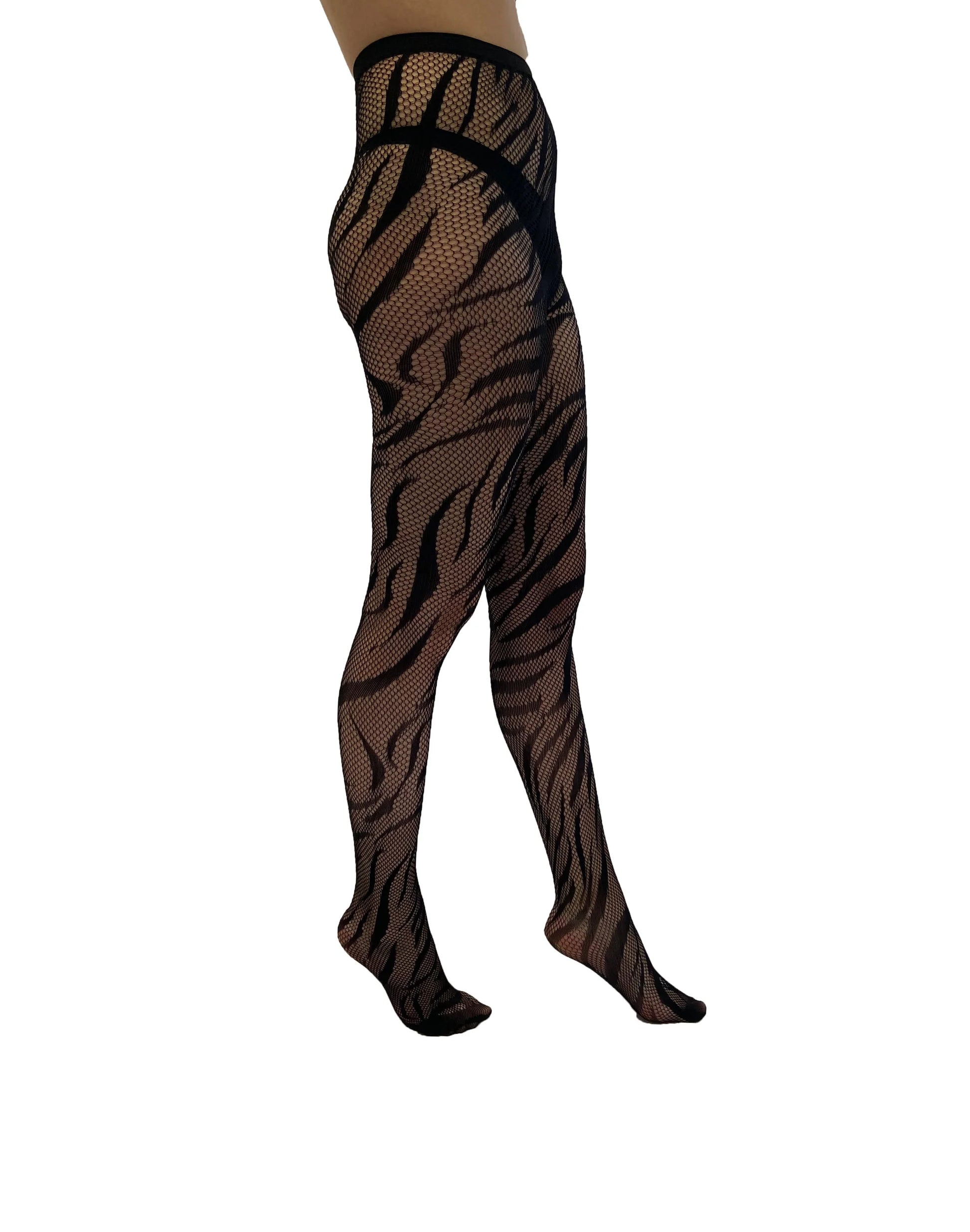 Gjør garderoben din mer stilfull med Pamela Manns 'Fire Net' strømpebukser. Disse strømpebuksene er et essensielt tilbehør for enhver som ønsker å tilføre et snev av eleganse og sexiness til antrekket sitt. Med et unikt stripemønster som minner om zebra- eller tigerprint, er disse perfekt for enhver festlig anledning, som for eksempel fest. De ser fantastiske ut under en svart kjole eller sammen med vinterens knelange støvler.