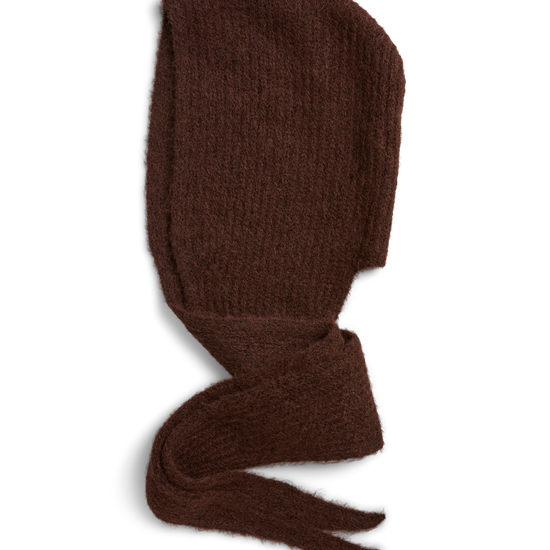 Denne balaclava fra Pieces kombinerer funksjon og mote på beste vis. Den mørkebrune kabelstrikken gir et detaljert, teksturert uttrykk, mens de lange knytebåndene sørger for at balaclavaen sitter godt og kan justeres etter behov. Perfekt for kalde vinterdager hvor både varme og stil er viktig.