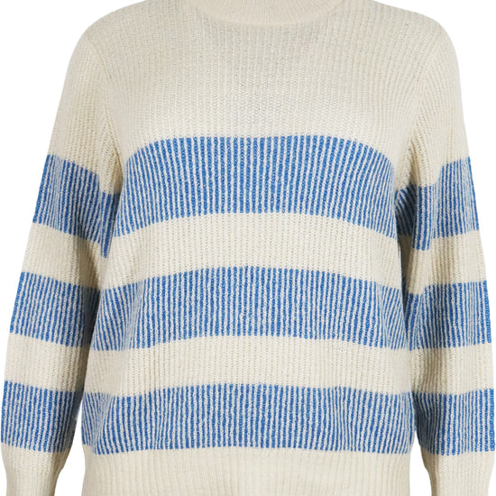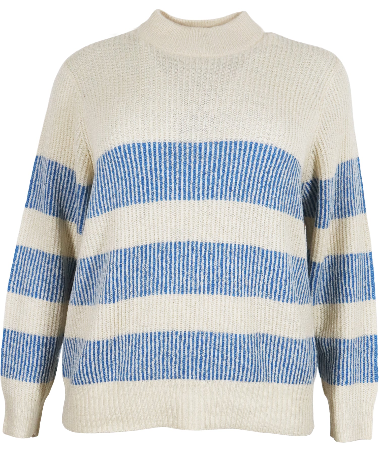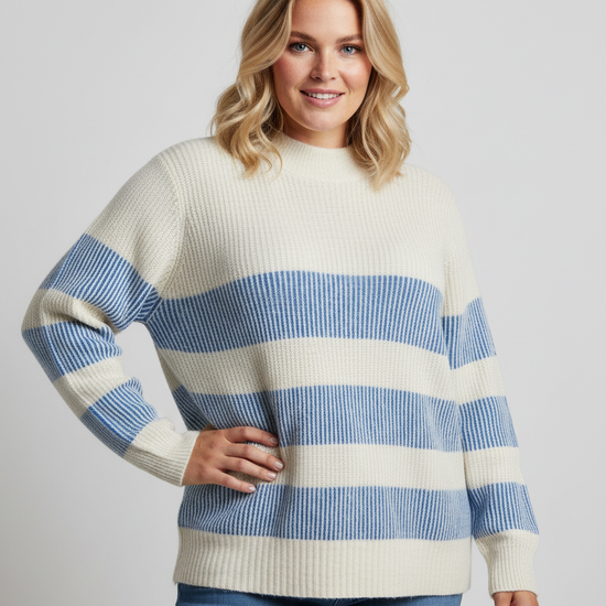 Gi garderoben din et løft med denne myke, strikkede blusen fra Cassiopeia. Blusen har brede, horisontale striper i klassiske fargekombinasjoner og føles utrolig behagelig mot huden.
