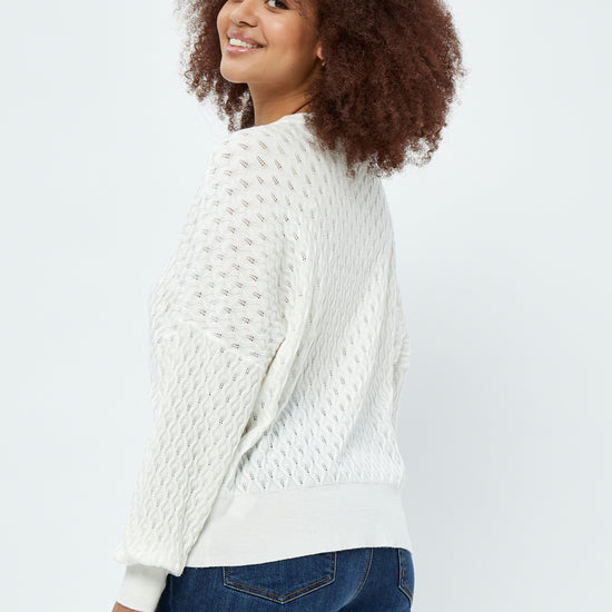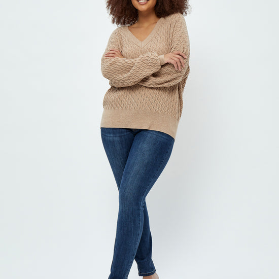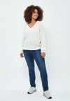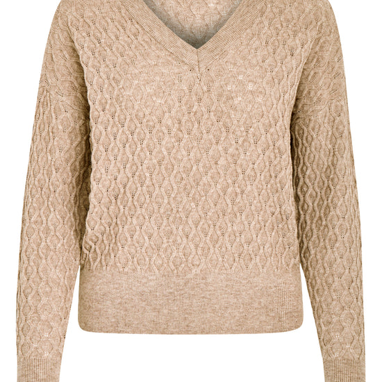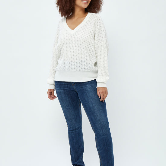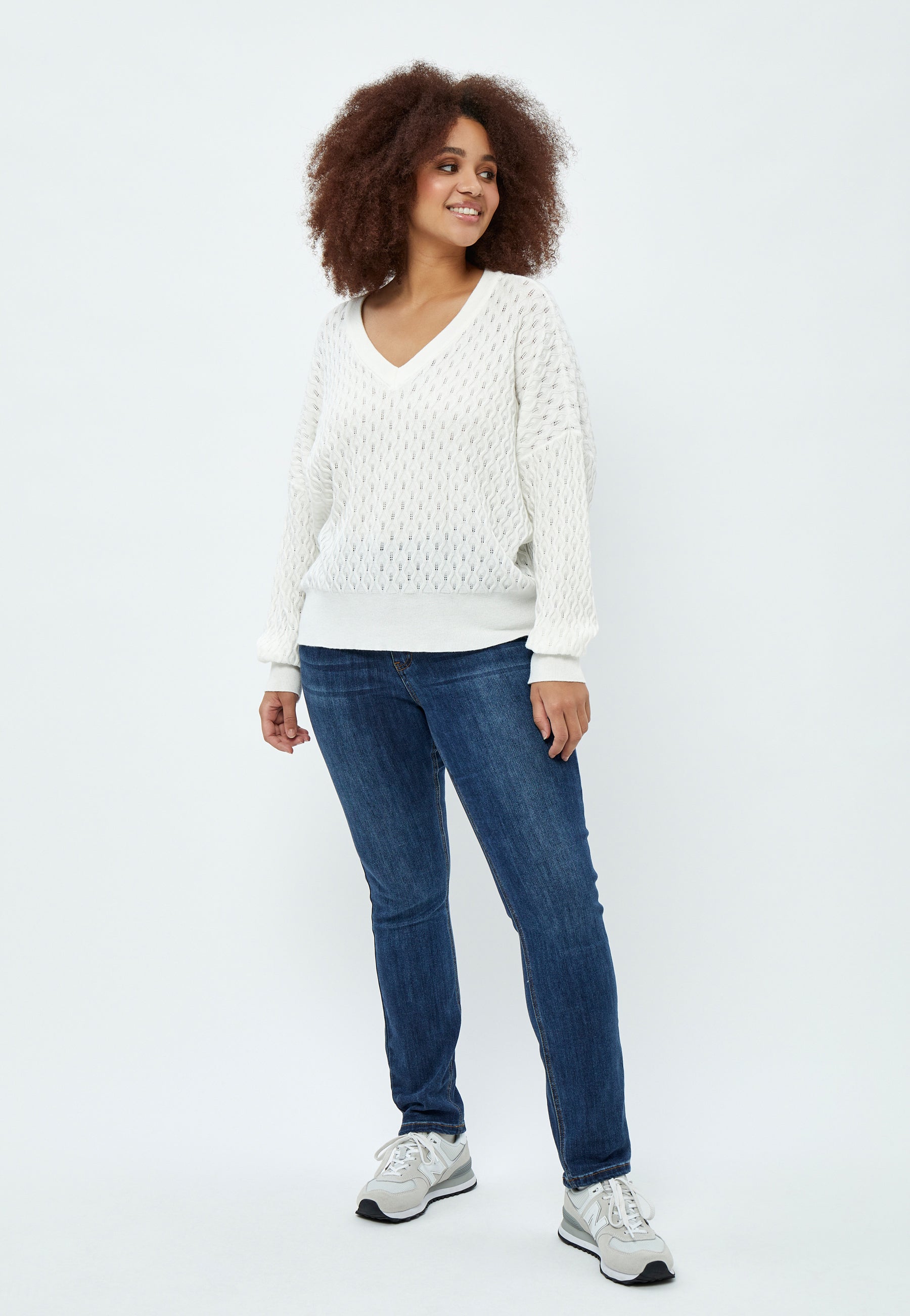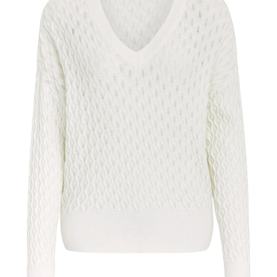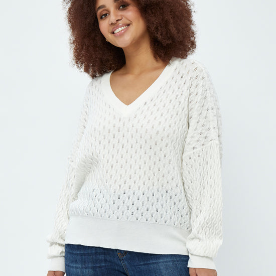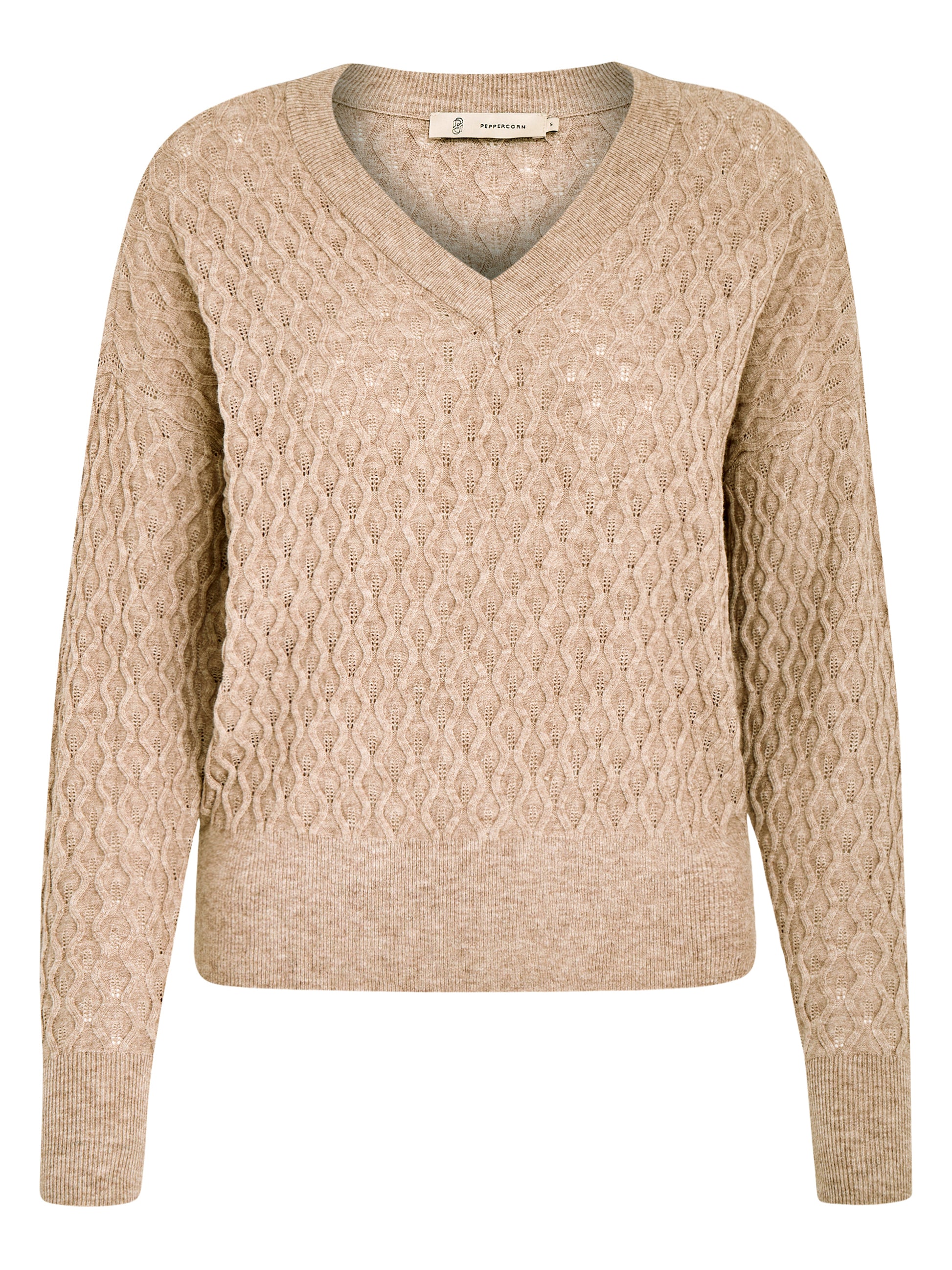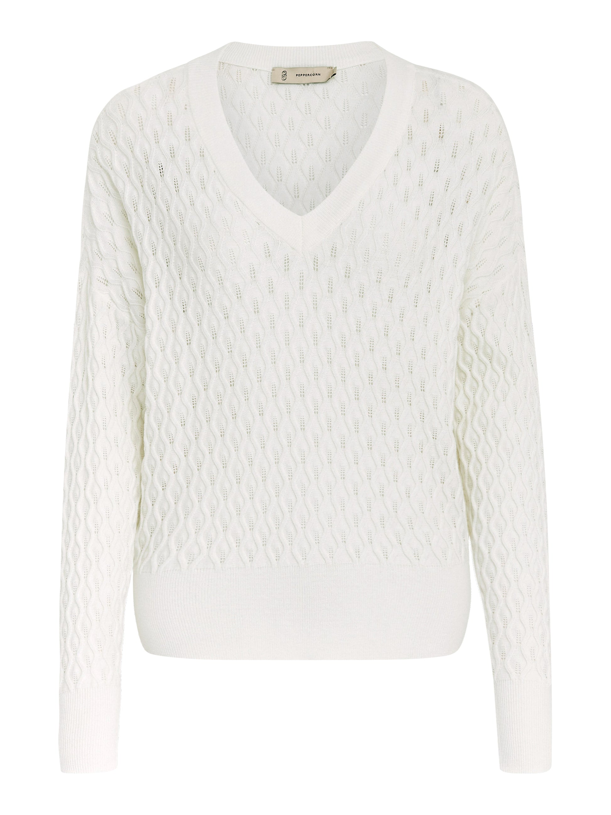 Rosalia V-neck Pullover fra Peppercorn er et must-have i enhver garderobe. Denne blusen er laget av en luksuriøs blanding av 50% viskose, 28% polyester og 22% nylon, som sikrer både komfort og holdbarhet. Det iøynefallende jacquardmønsteret gir liv til det klassiske strikkedesignet, mens de friske fargene gjør den perfekt til vårgarderoben. Tilgjengelig i fargene: hvit, Brazilian Sand Melange, Warm Sand Melange, Cloud Dancer og svart.