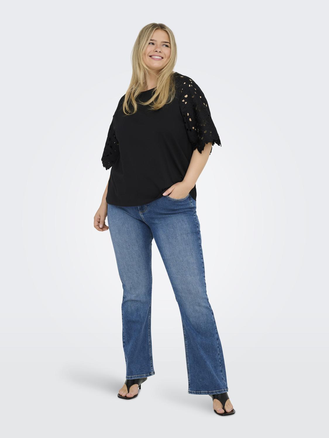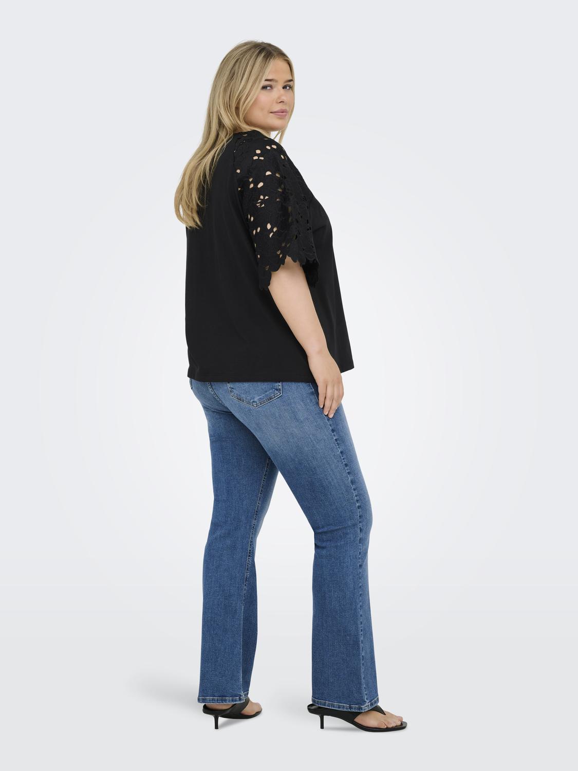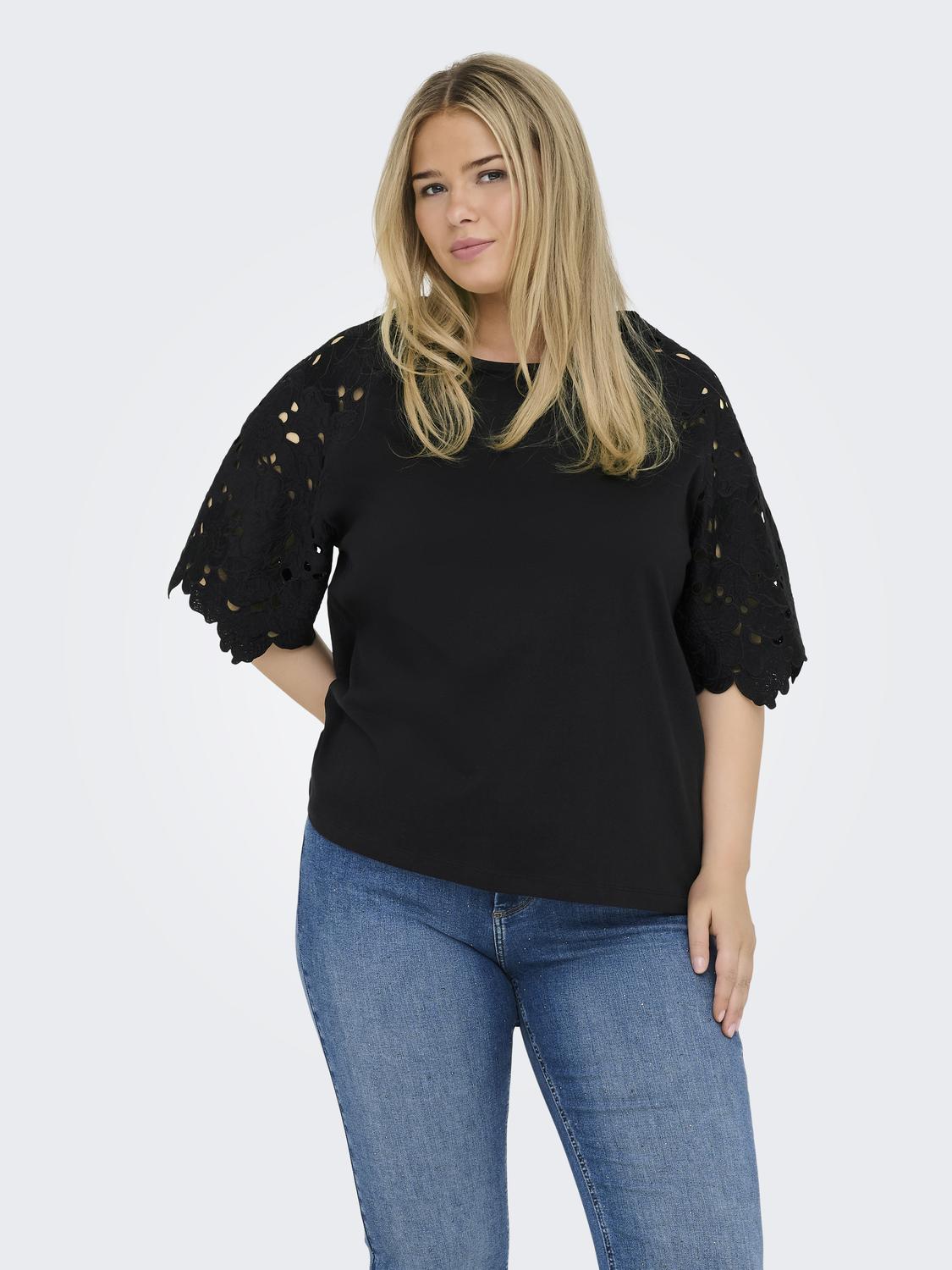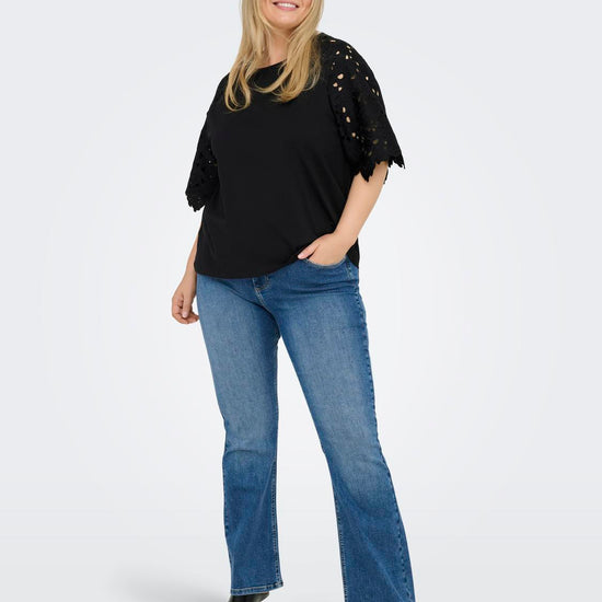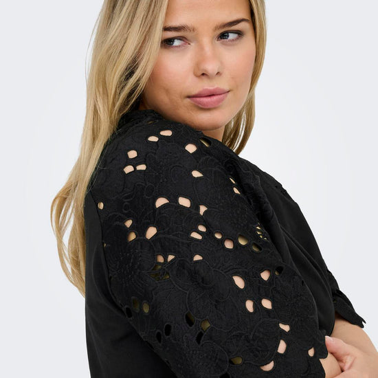Dette bløde sortfarvede top er skabt i 100% bomuld, som giver en behagelig og åndbar oplevelse hele dagen. Den har en rund hals og korte ærmer med volumen, som tilføjer en feminin og let detalje til det enkle design. Broderie anglaise-detaljen giver et subtilt, dekorativt præg, der løfter det klassiske look uden at overdrive.