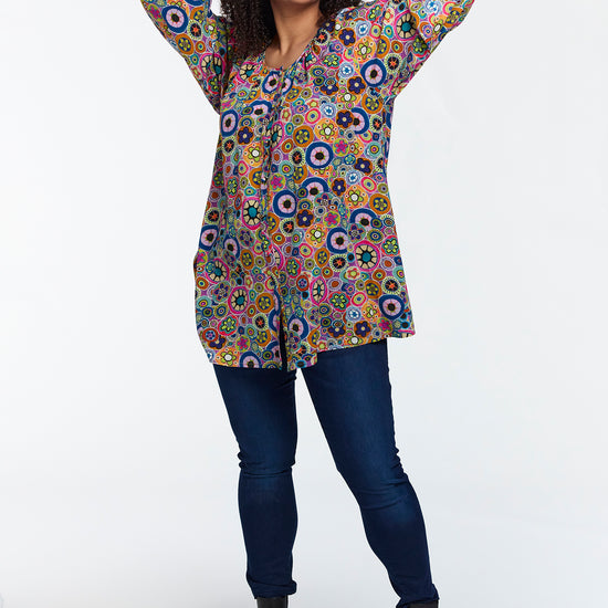 Livlig multicolor print og avslappet passform