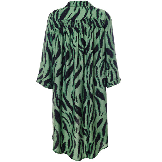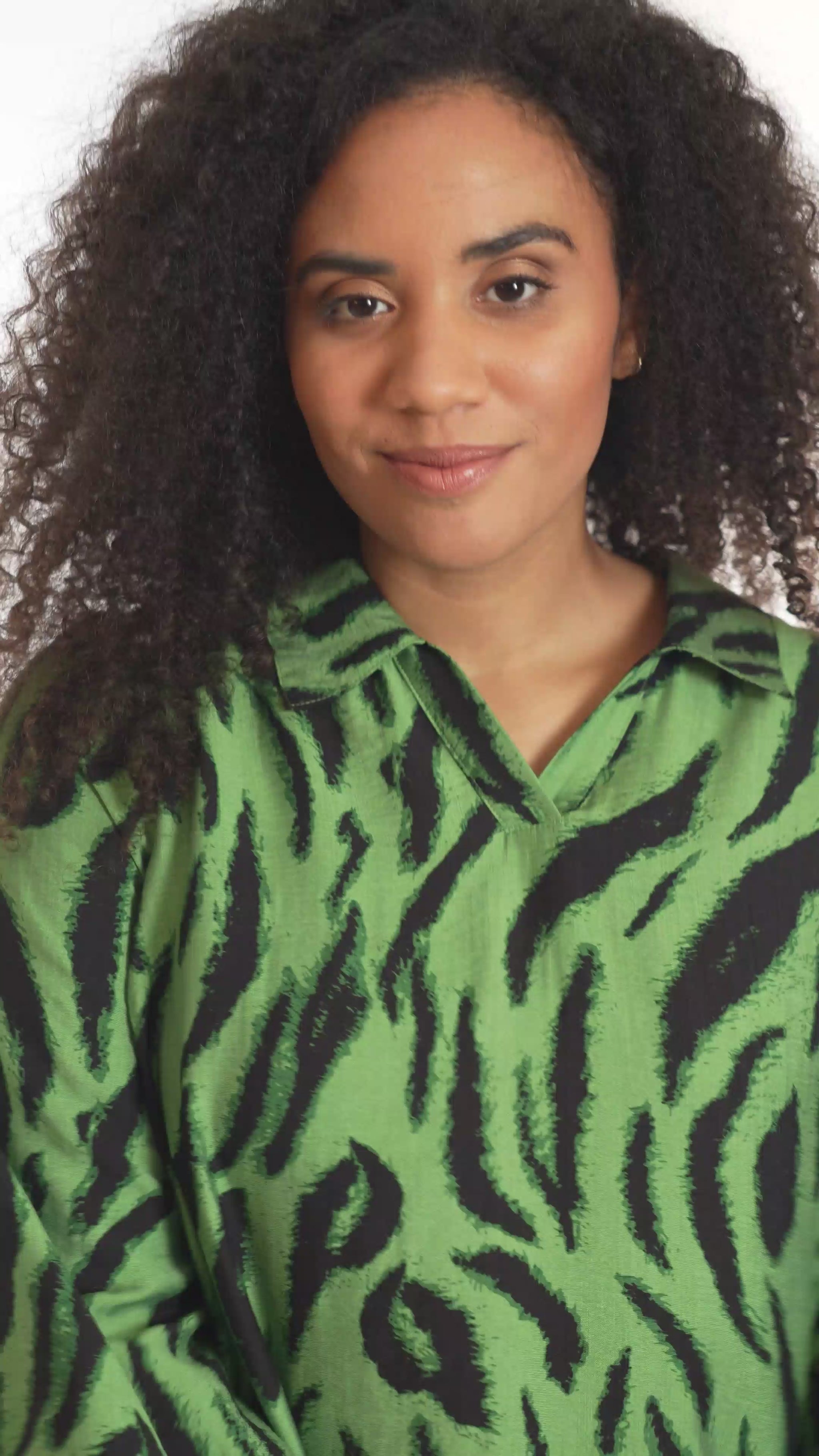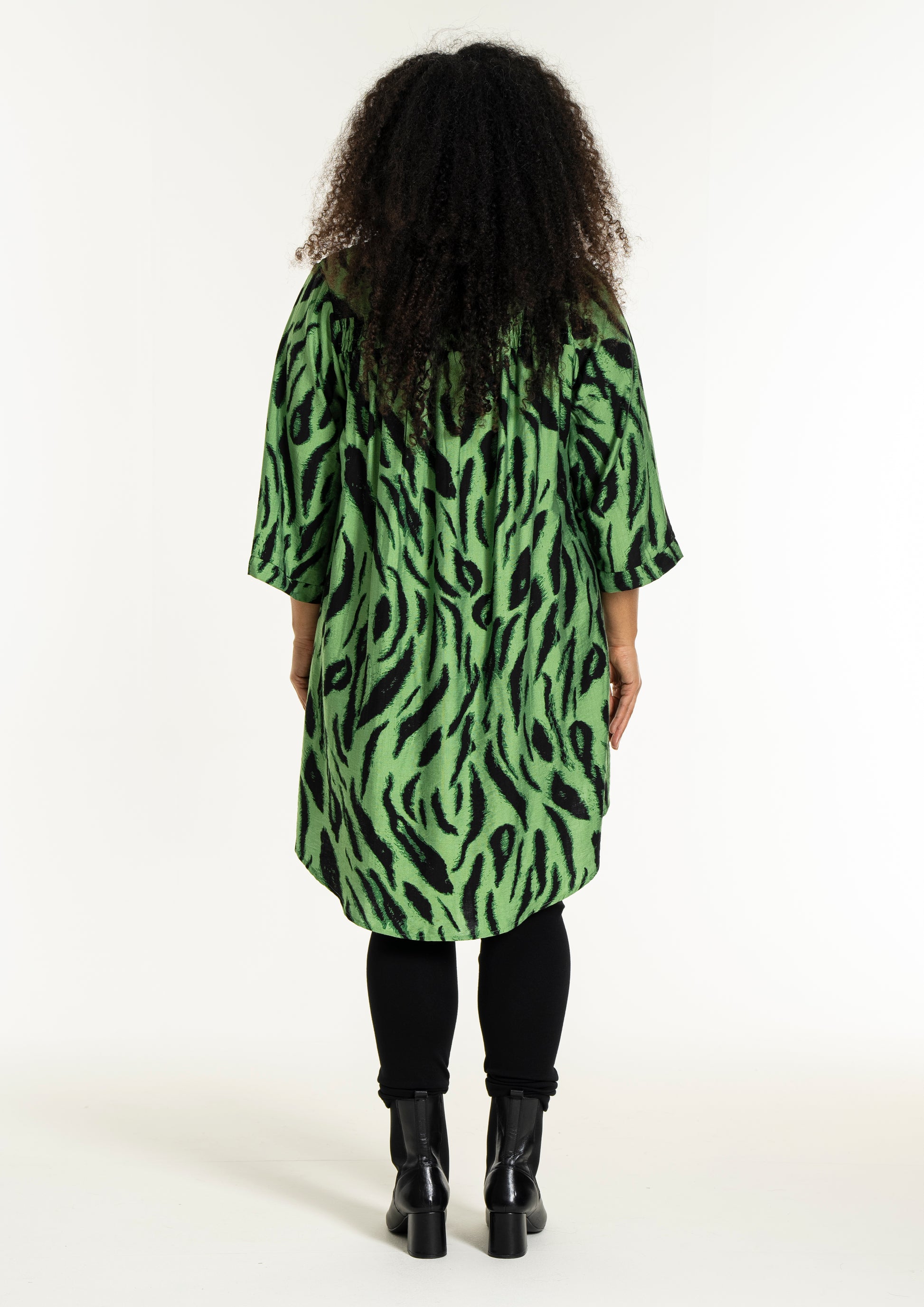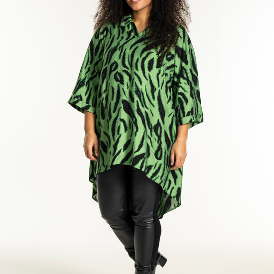 Opplev den vakre tunikaen fra Studio som kombinerer stil og komfort i ett fantastisk design. Med et slående sort penselstrøkmønster på en lys grønn bakgrunn, tilfører denne tunikaen et kunstnerisk preg til garderoben din. Designet er løst og avslappet, hvilket gir en vakker drapering. Det myke materialet består av 85% viskose og 15% nylon, som sikrer både letthet og en anelse struktur.