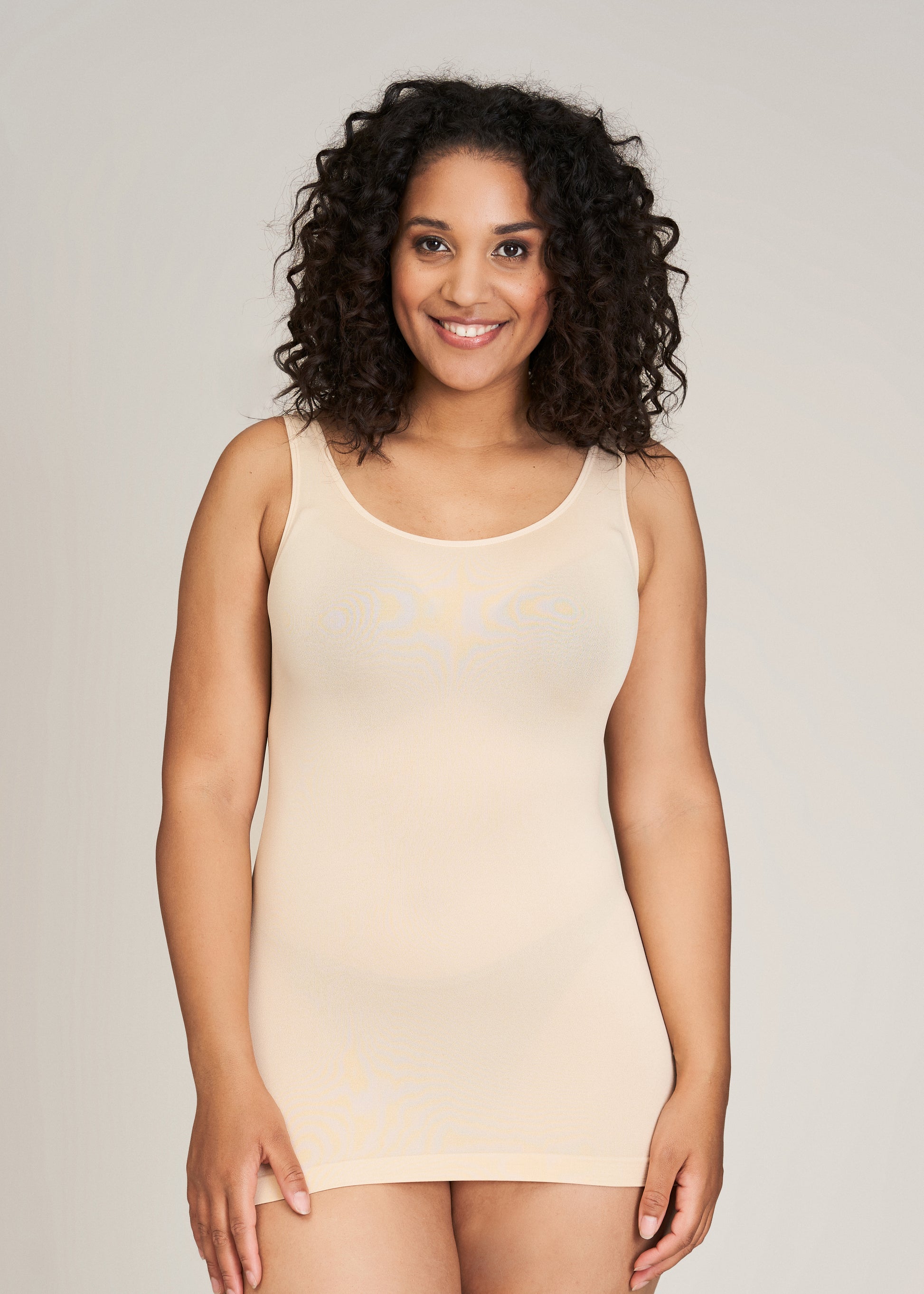 Toppen er laget av et behagelig materiale med 94% polyamid og 6% elastan, som sørger for at plagget glir jevnt over kroppen din. Med en lengde på 65 cm omfavner denne toppen ulike kroppstyper. Denne Seamless Slimshape toppen fra Sandgaard, i en diskret hudfarge, er ideell for å ha på seg under alle stiler.