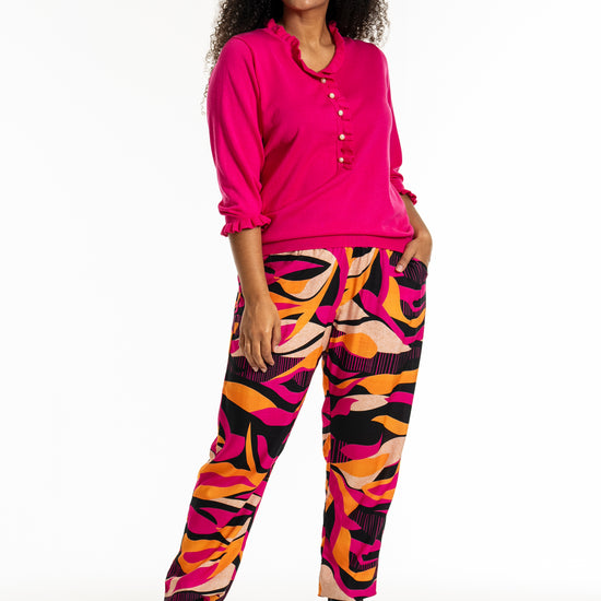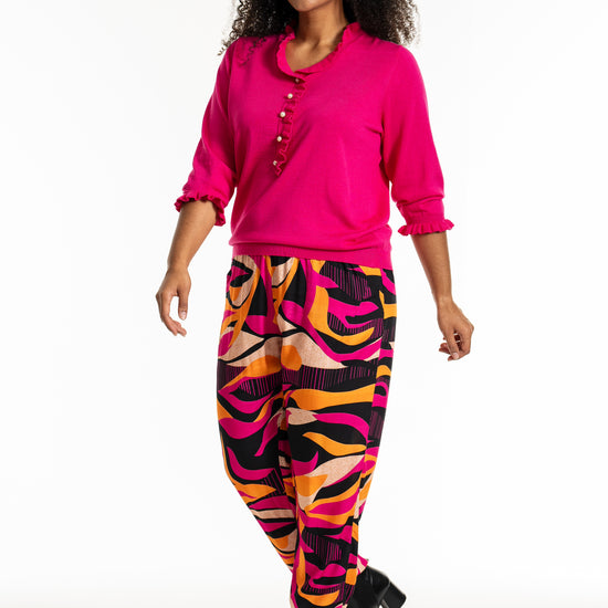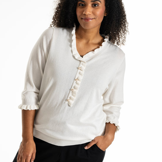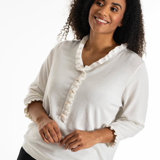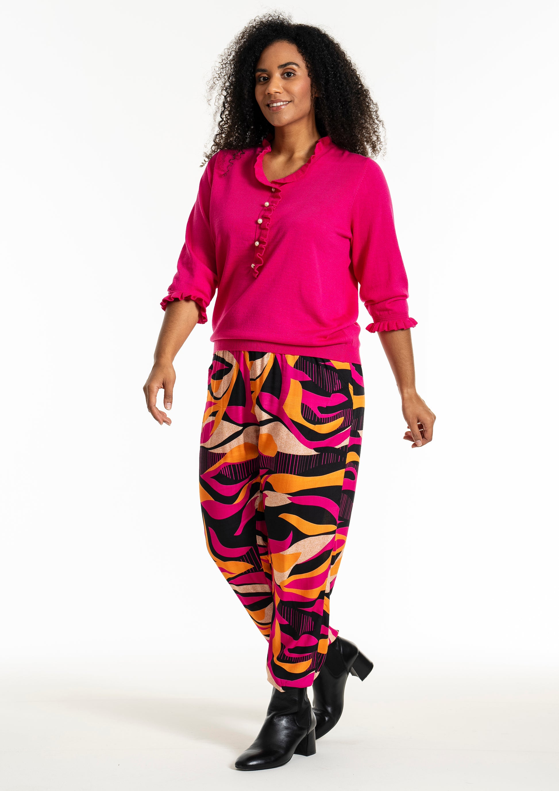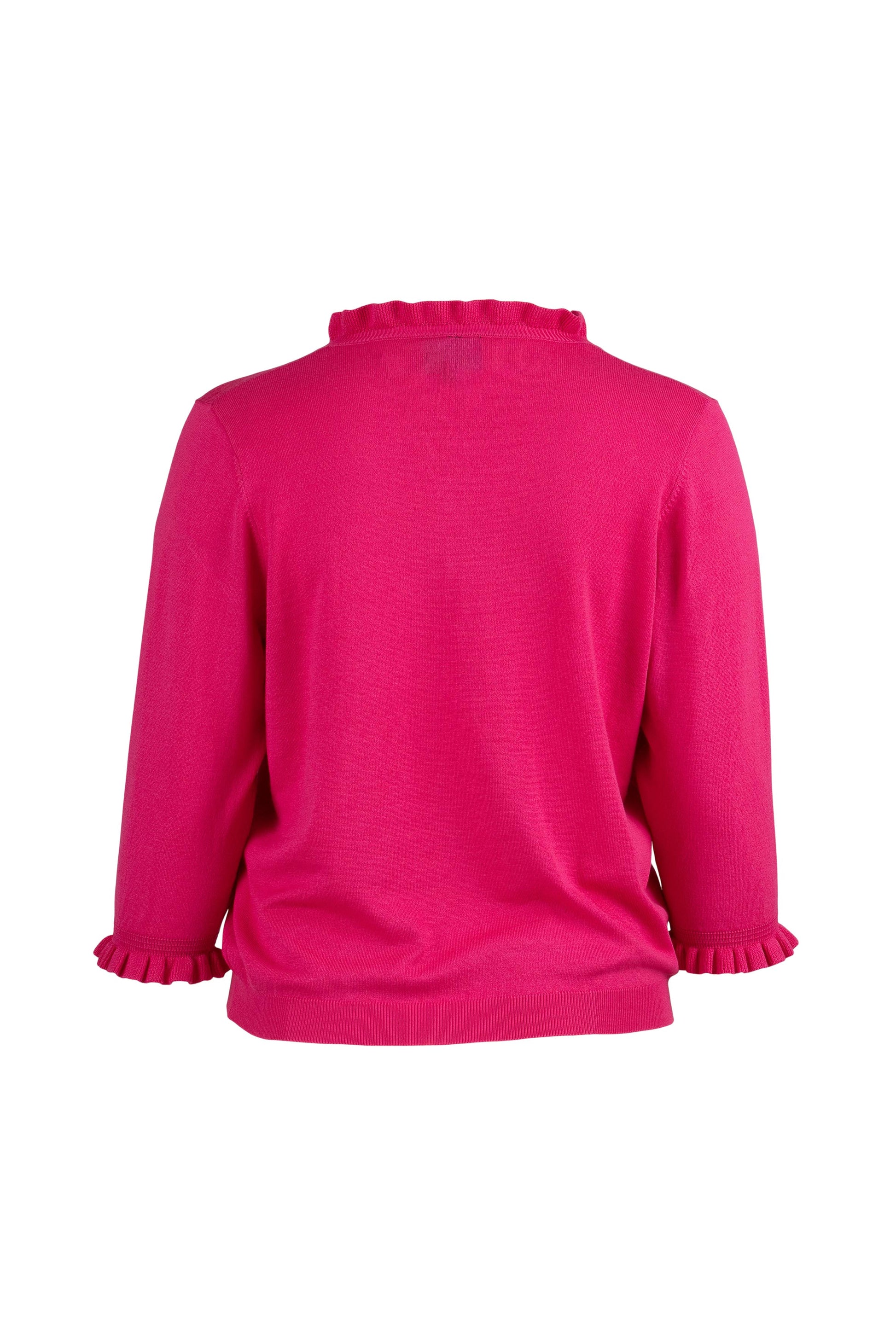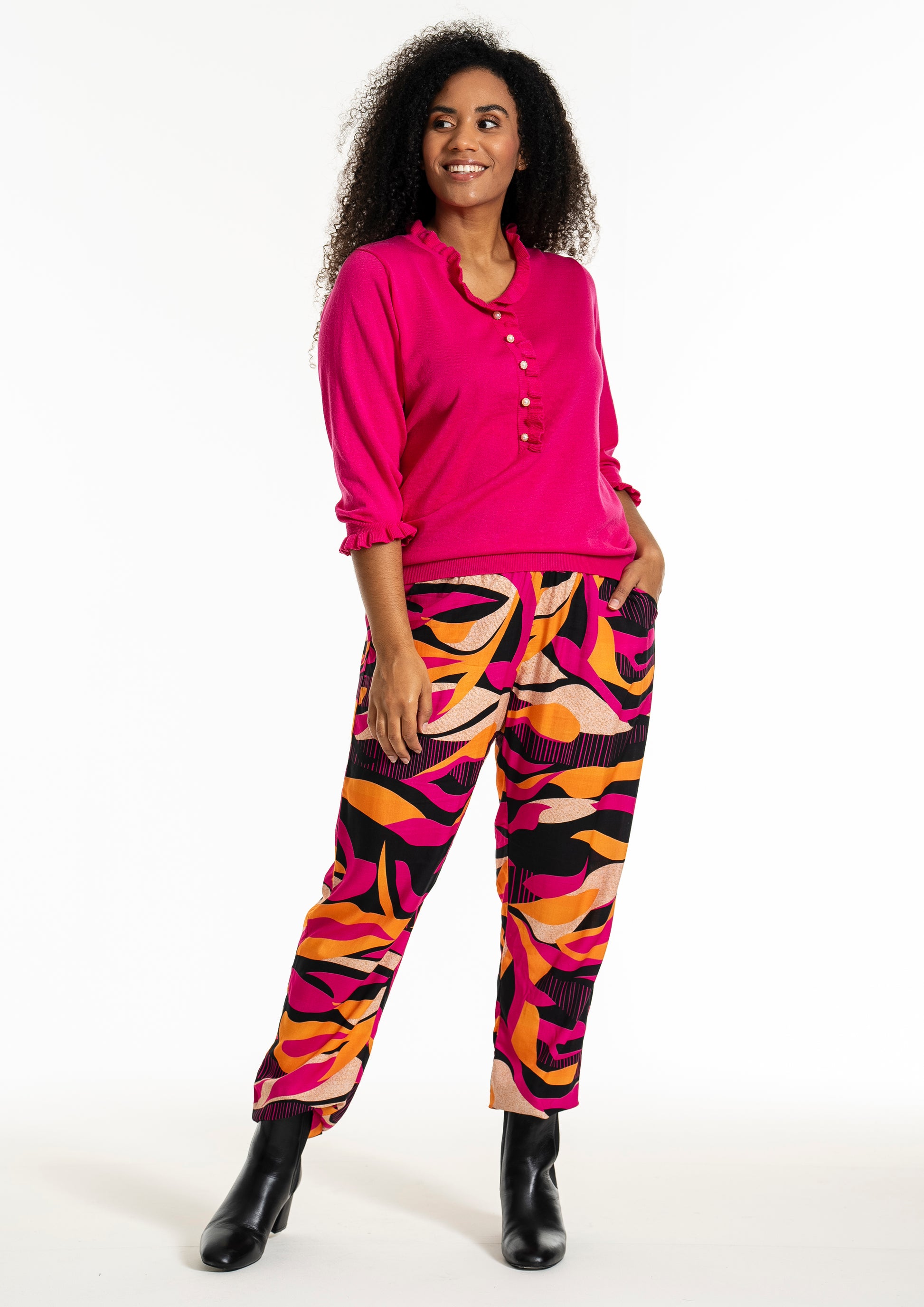 Blusen er tilgjengelig i tre elegante farger - svart, offwhite og rosa - som gjør det enkelt å matche med andre plagg i garderoben din. Den er laget i en deilig strikket kvalitet som sikrer både pusteevne og komfort hele dagen. Perfekt å kombinere med plus size jeans eller plus size skjørt for et komplett antrekk.