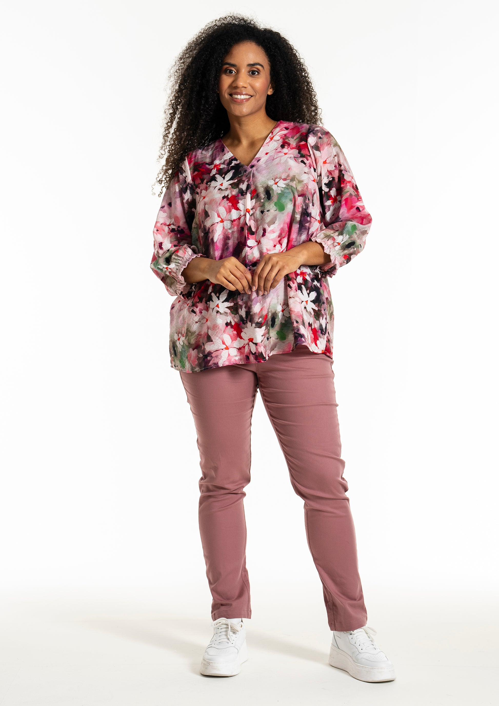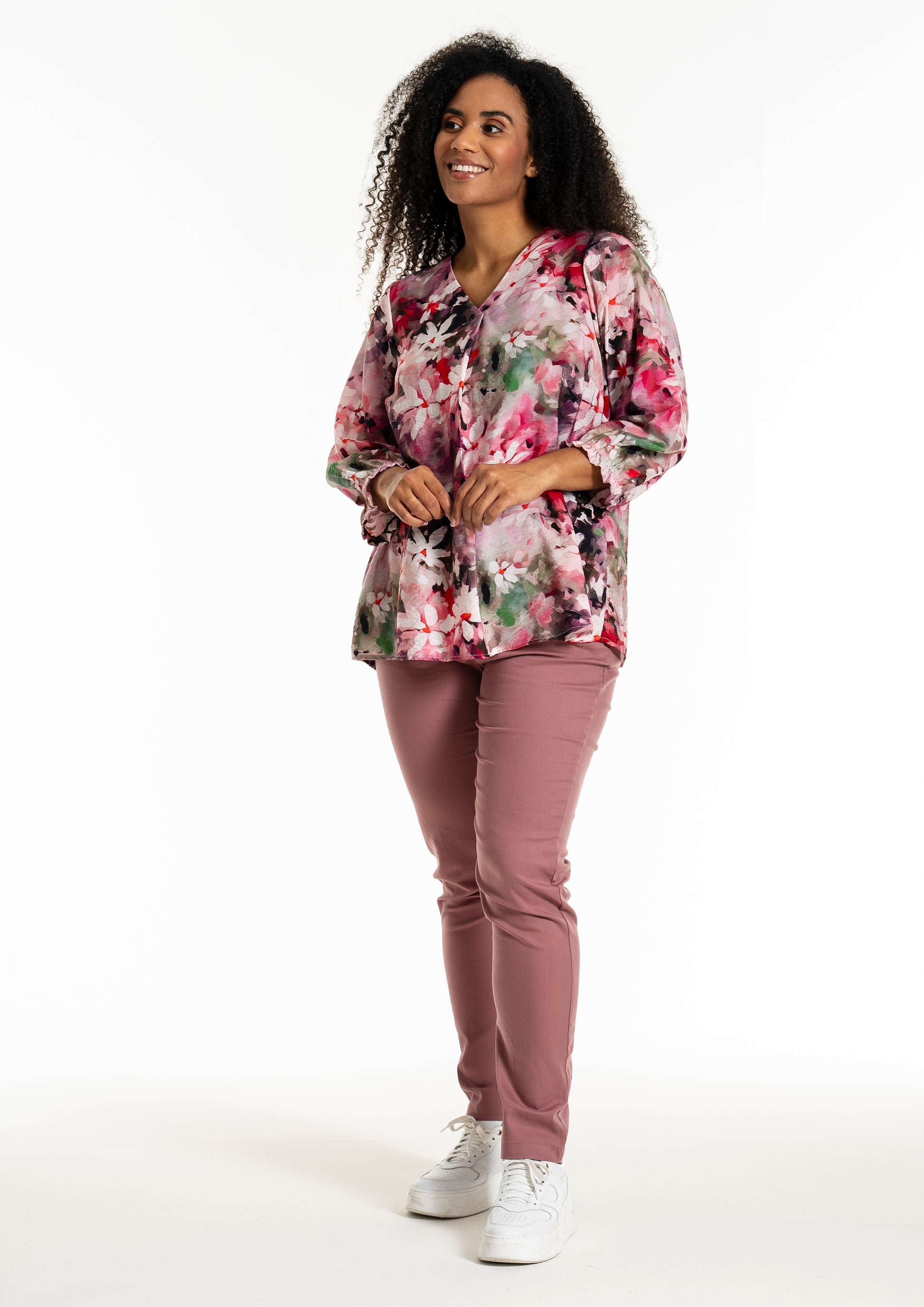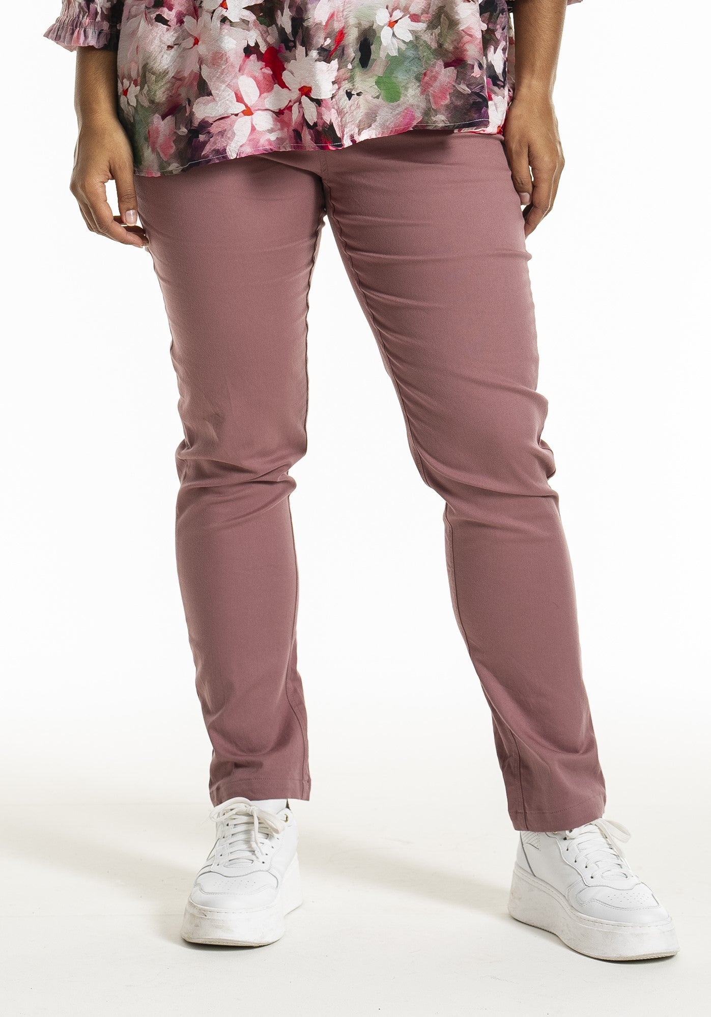 Disse buksene er perfekte for både hverdagsbruk og festlige anledninger. Den slanke passformen og den elegante rosa fargen gjør dem til et allsidig valg i garderoben. For flere alternativer, besøk vårt utvalg av plus size bukser.