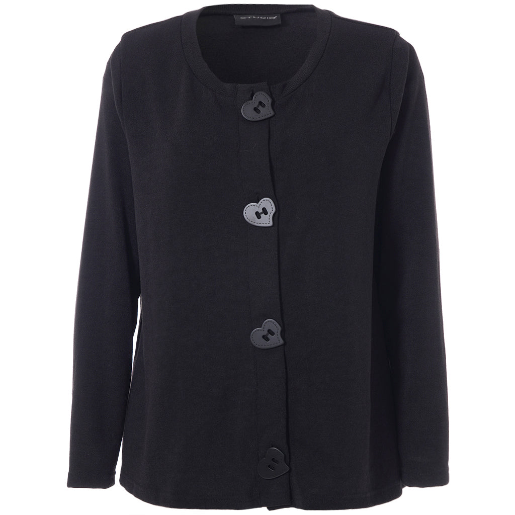 Denne enkle, sorte cardigan fra Studio kombinerer komfort og stil med et feminint uttrykk. Perfekt til hverdagsbruk og enkel å matche med garderoben din. Høydepunkter: