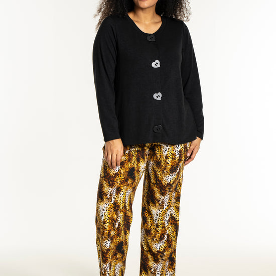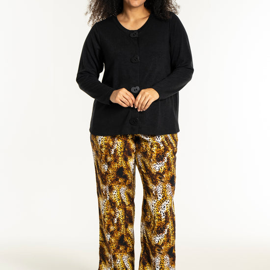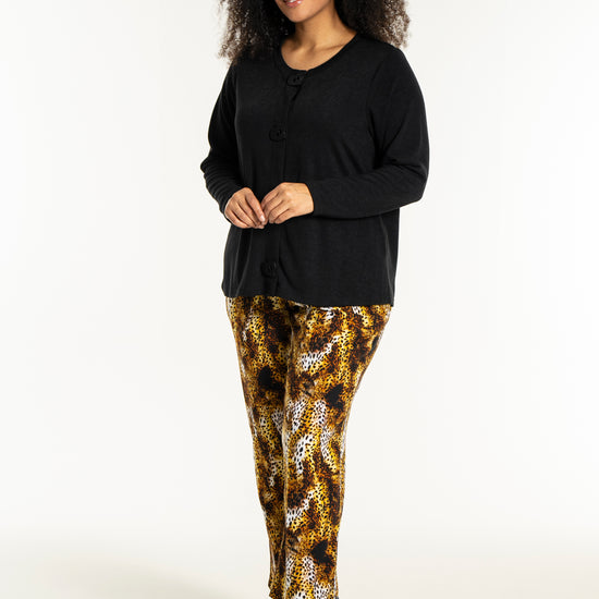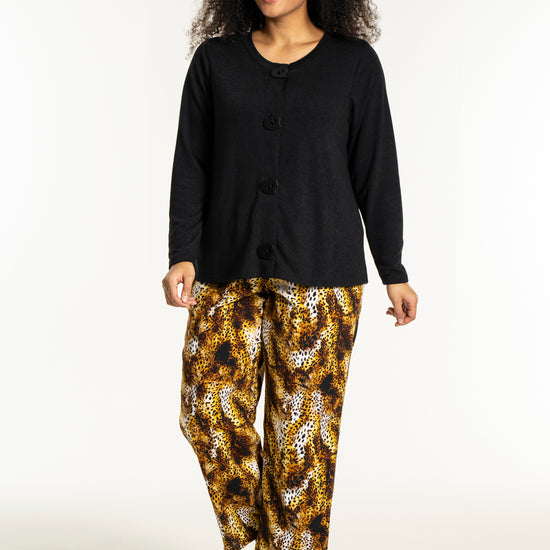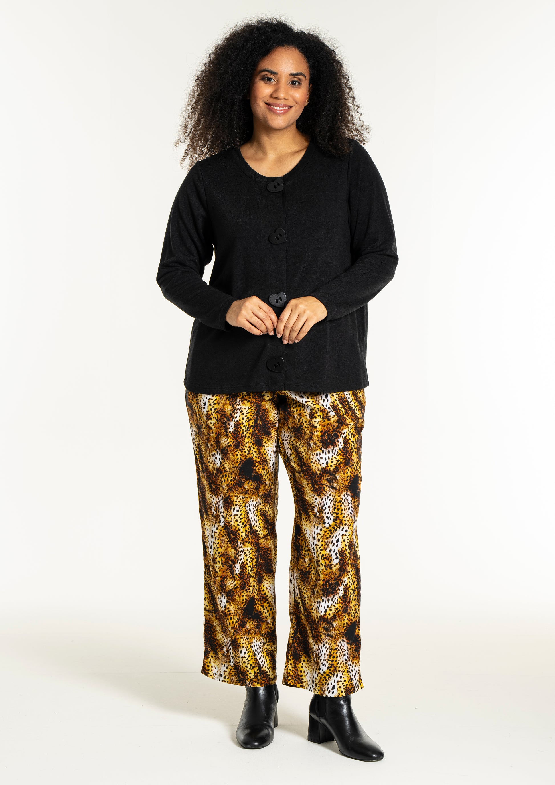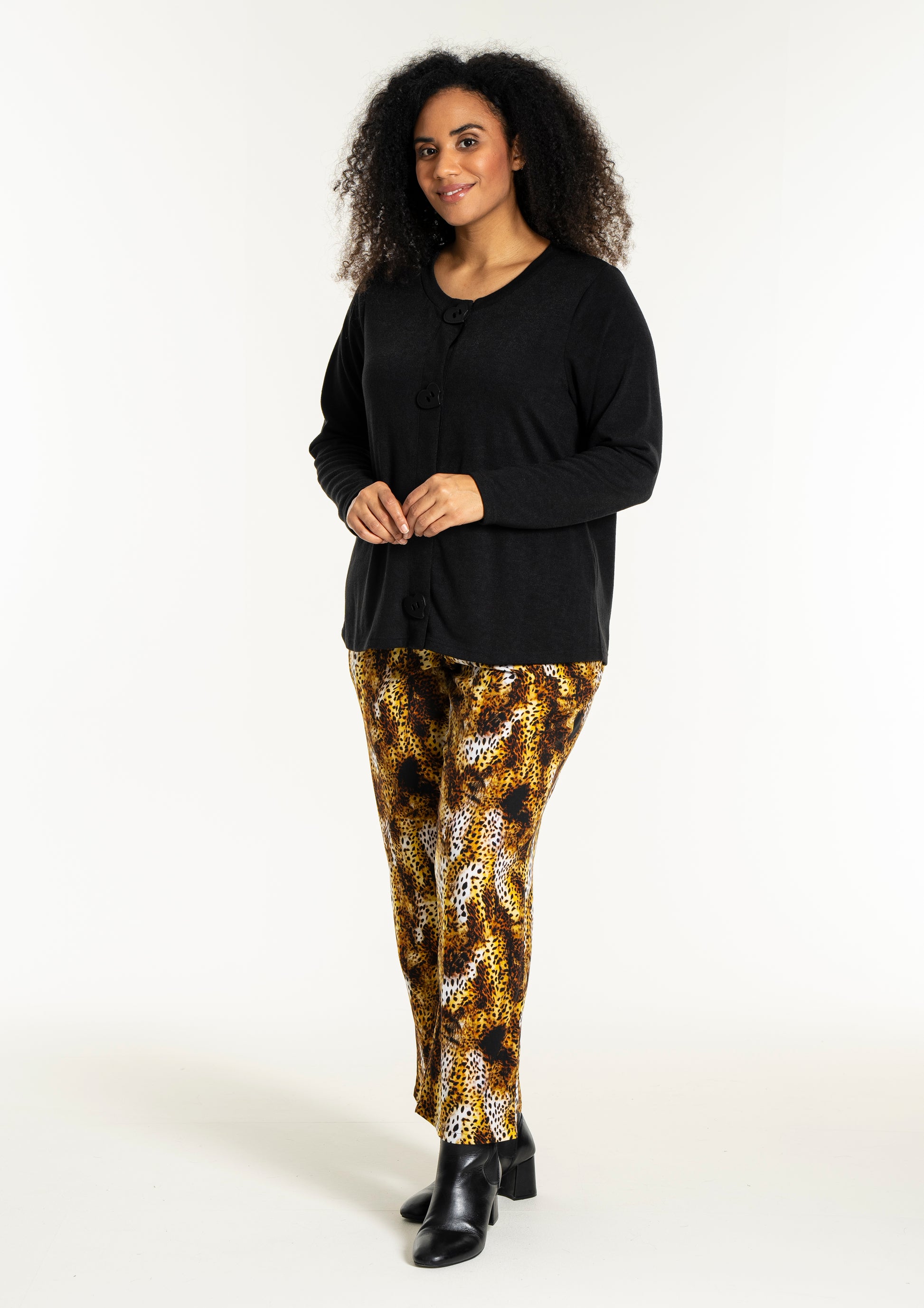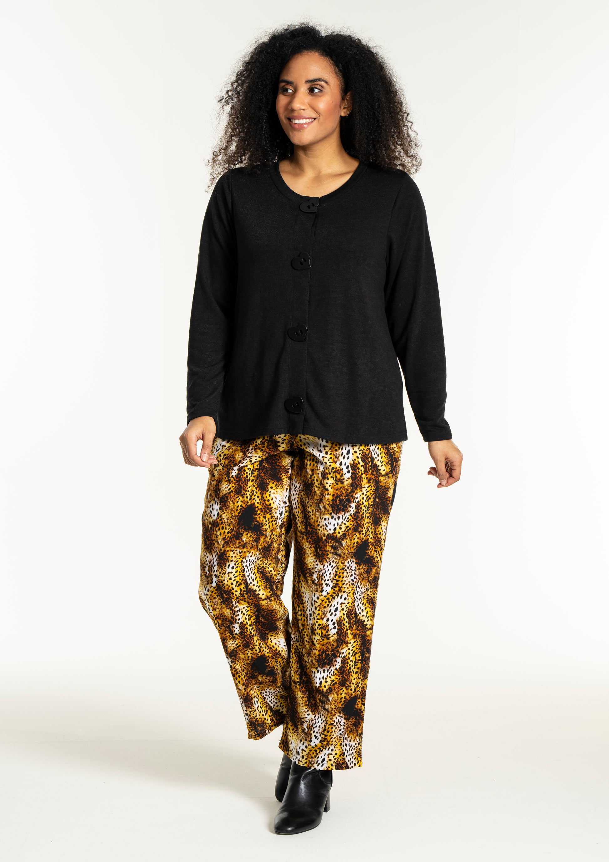 Den klassiske sorte fargen gjør den lett å bruke både til plus size bukser og nederdeler. De søte knappene gir et ekstra feminint preg til et tidløst plagg.