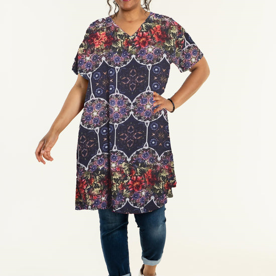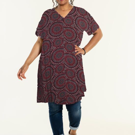 Denne kjolen er perfekt for deg som ønsker både komfort og stil – den lette A-fasongen smigrer de fleste figurer og gjør kjolen egnet til enhver anledning. Style den med et par leggings for en casual hverdagslook, eller bruk den alene for et mer elegant uttrykk. Kjolen er et sikkert valg i garderoben, enten det er til jobb eller fest. Utforsk flere modeller i vår kjole-kategori for plus size.