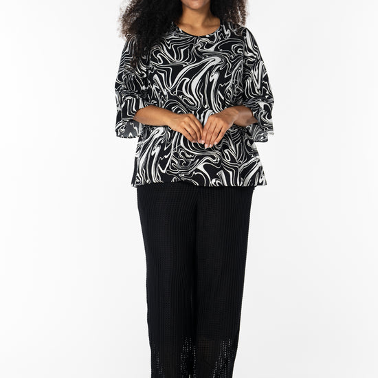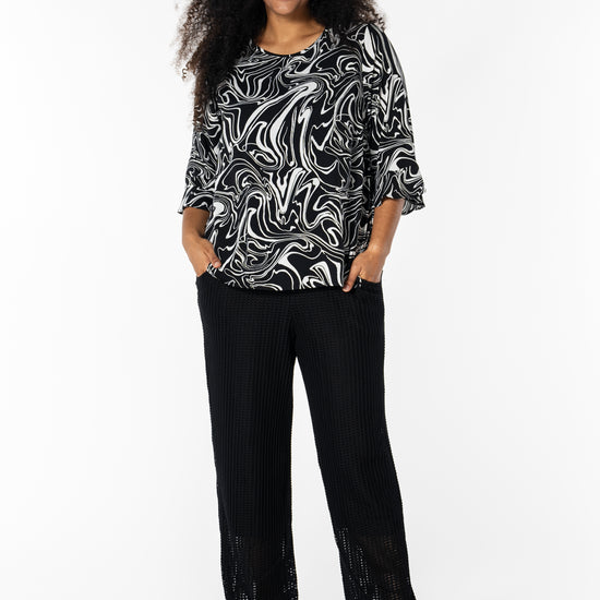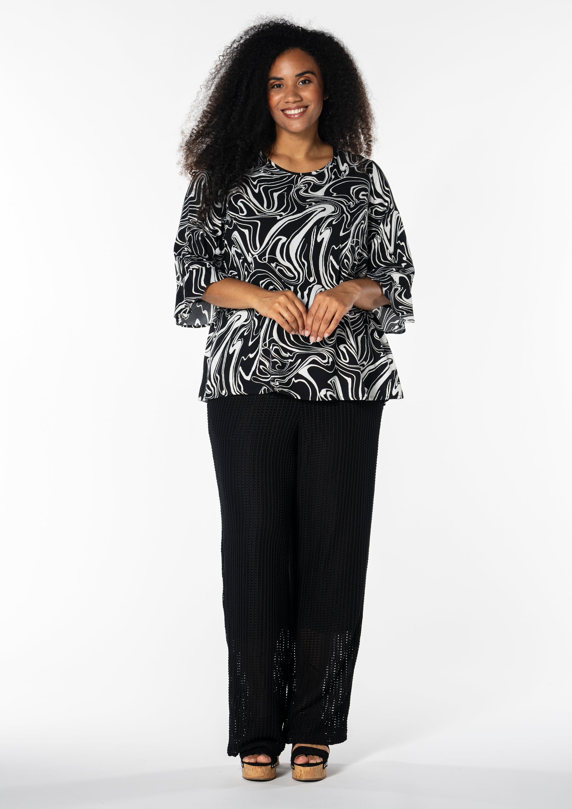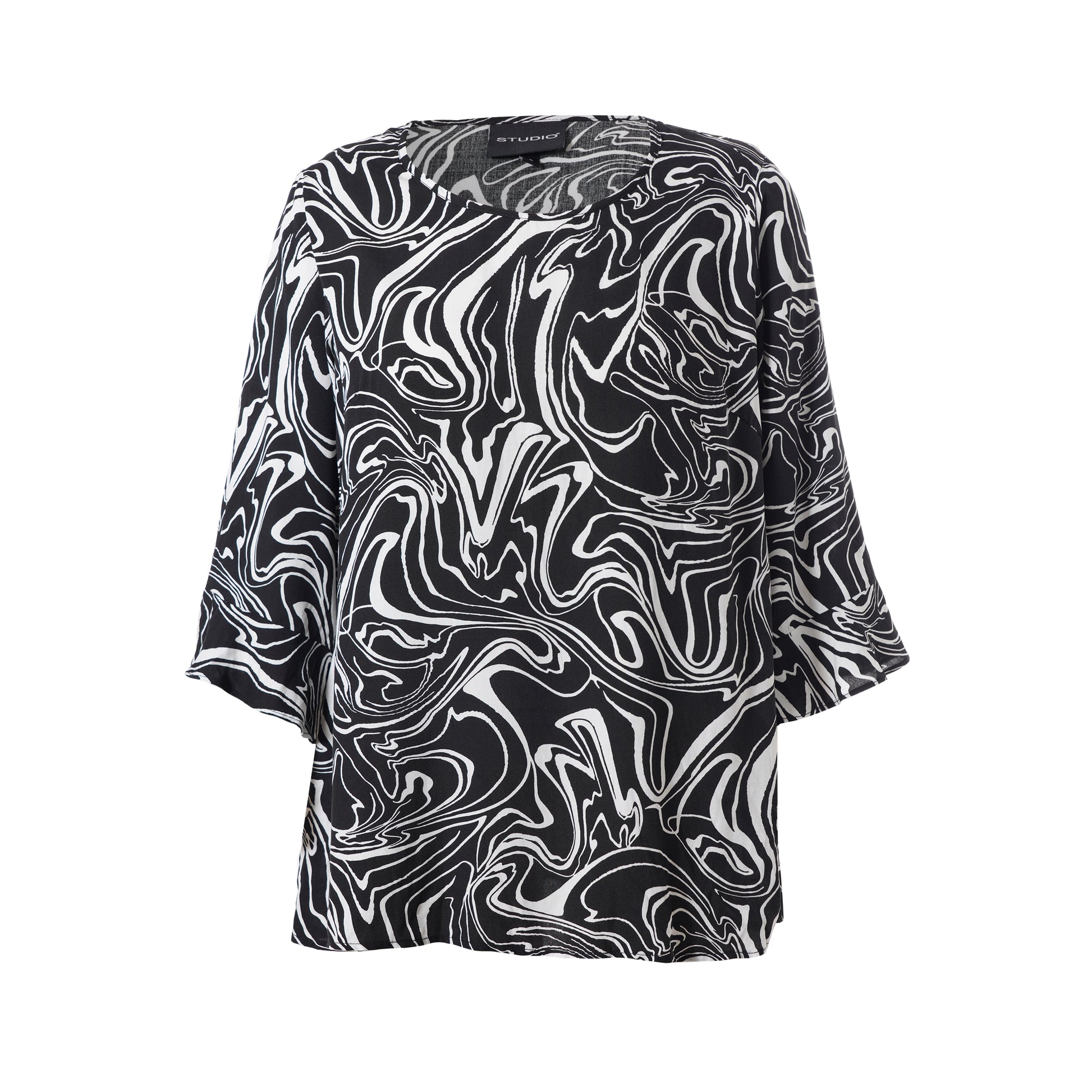 Opplev den perfekte kombinasjonen av stil og komfort med denne blusen fra Studio. Designet i et flott sort og hvitt zebra-mønster, er denne blusen ideell for å tilføre et tidløst preg til garderoben din. Med sin normale passform og lette 100% viskosemateriale sikrer den både eleganse og bevegelsesfrihet. Blusen kommer i størrelsene S, M, L og XL, slik at du kan finne den perfekte passformen.