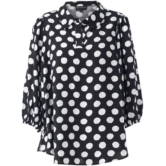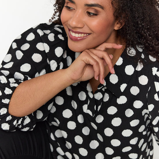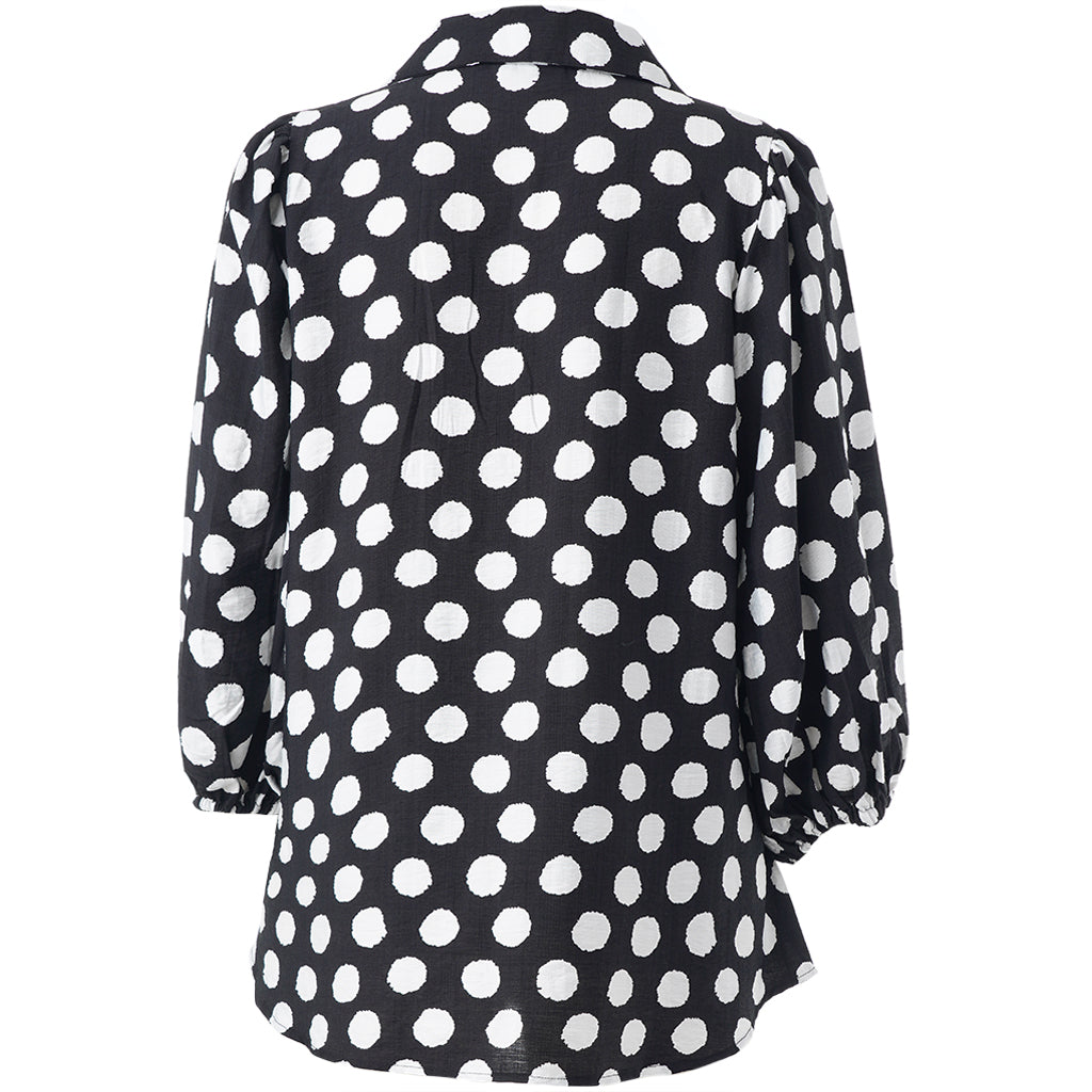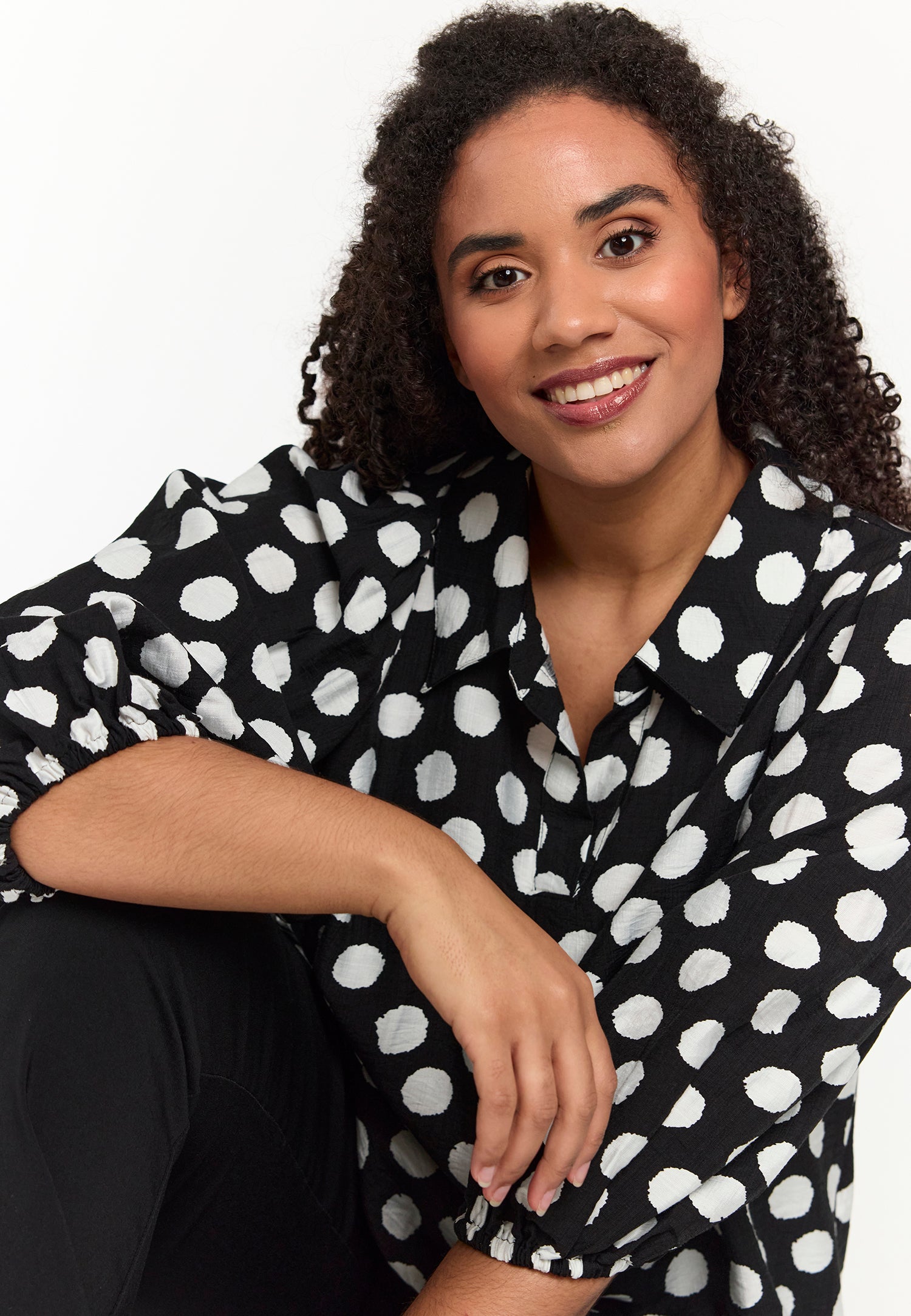 Studio leverer en klassisk skjorte i 100 % viskose med et lekkert prikket print – velg mellom frisk hvit med grønne prikker eller elegant sort med hvite prikker. Skjorten har en avslappet passform, skjortekrage og gjennomgående knapper, som gir et feminint og tidløst uttrykk.