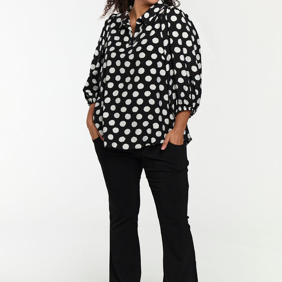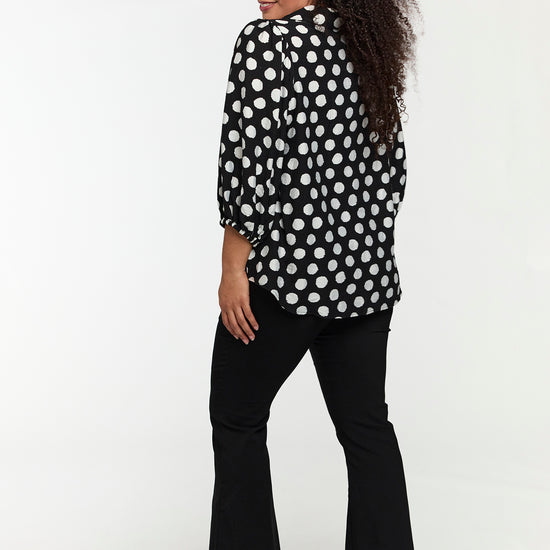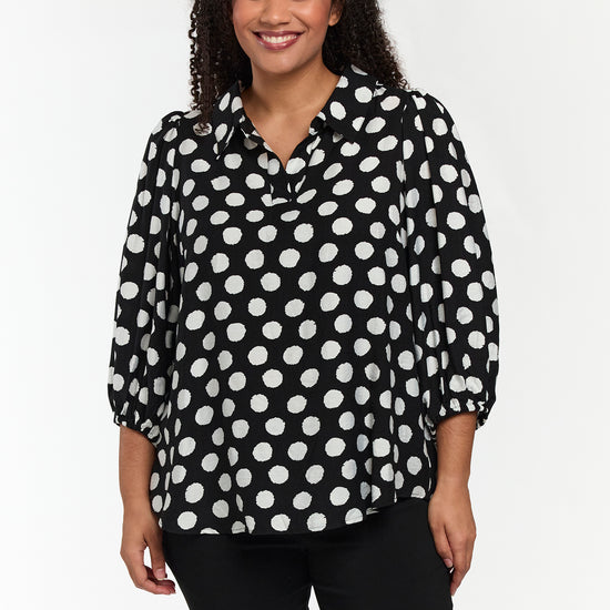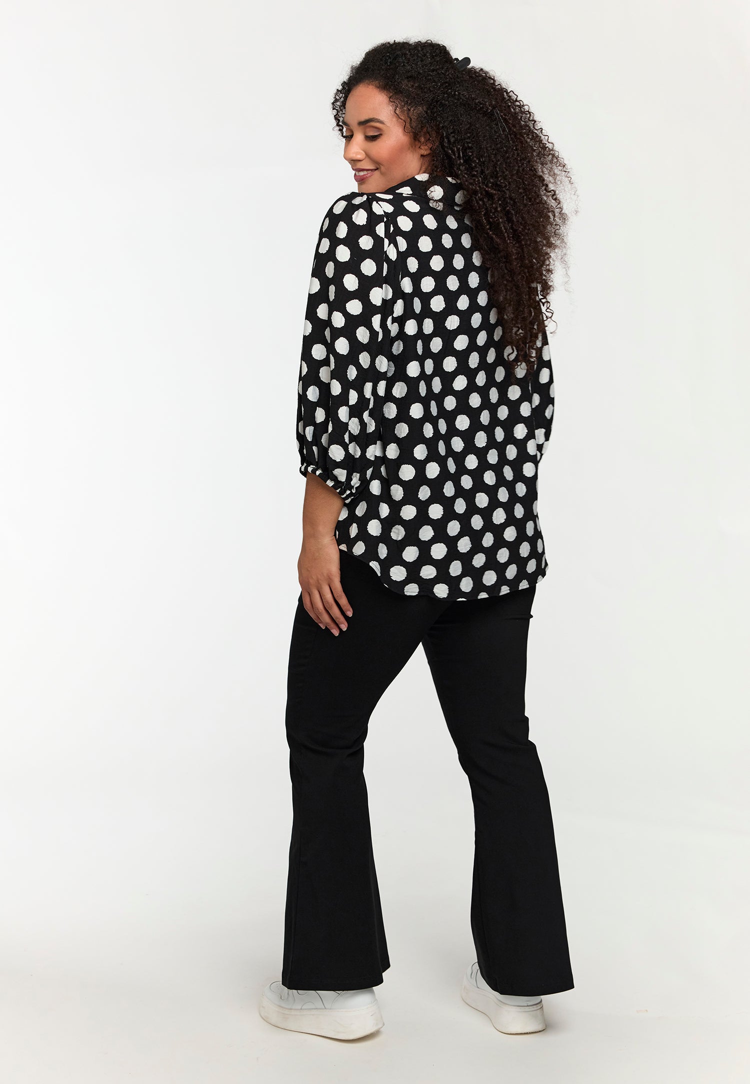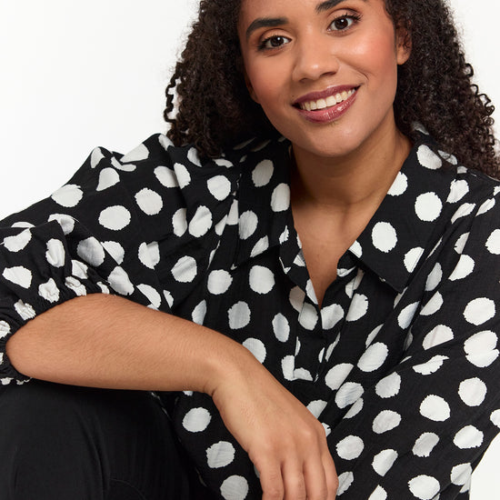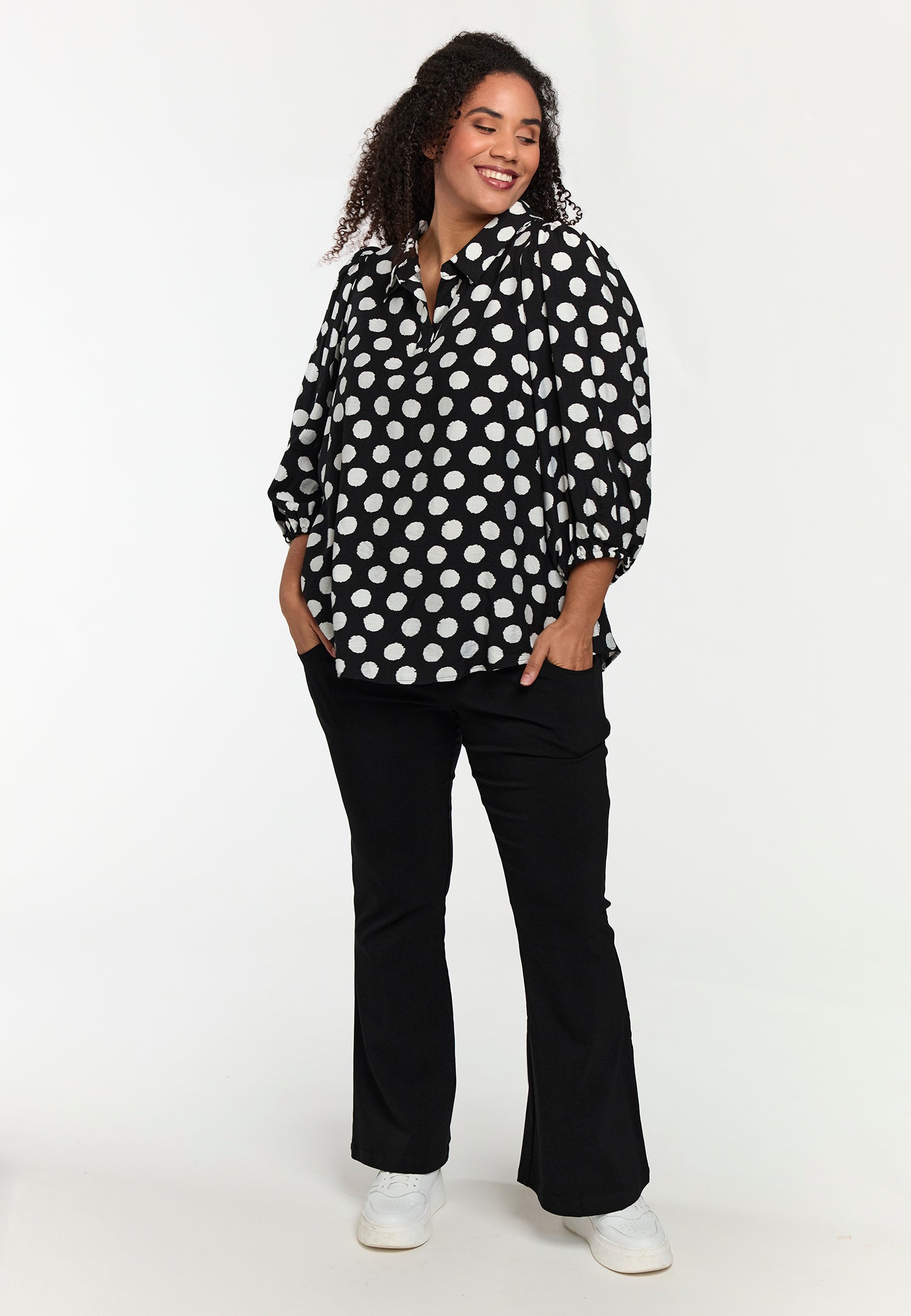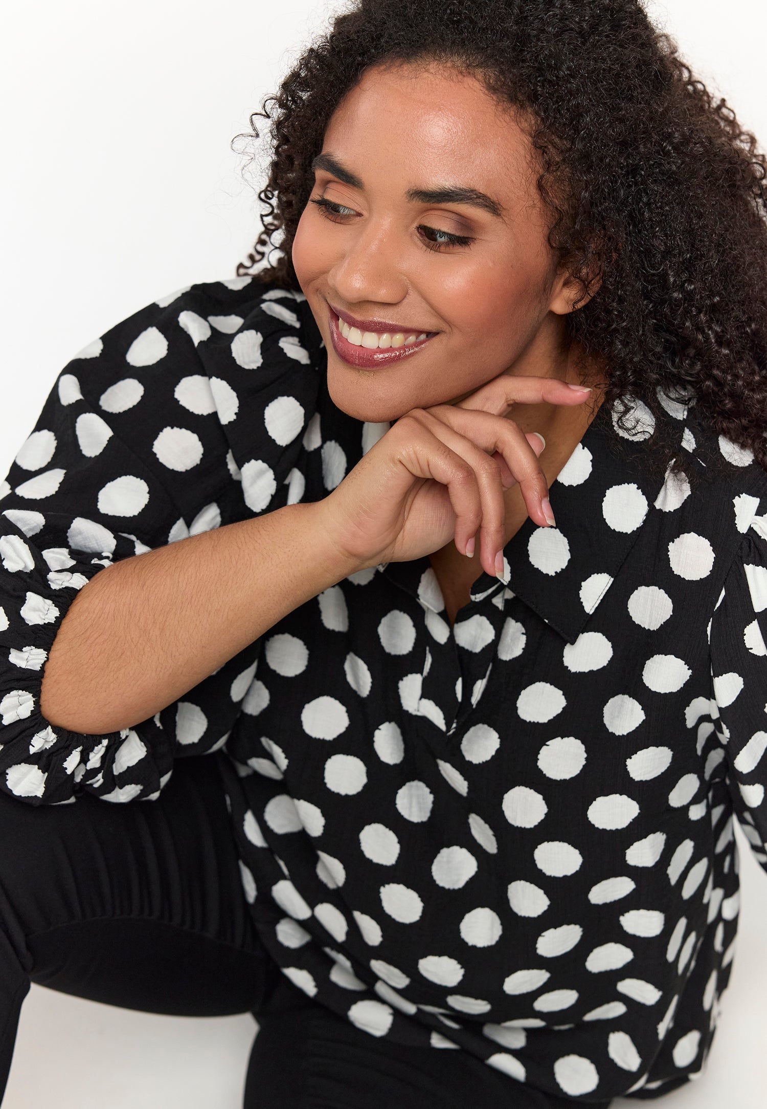 Den prikkede skjorten gir deg mange stylingmuligheter og passer like godt til plus size jeans som til plus size bukser. Med sitt tidløse design er dette et plagg du kan bruke sesong etter sesong – både til jobb, fritid og fest.